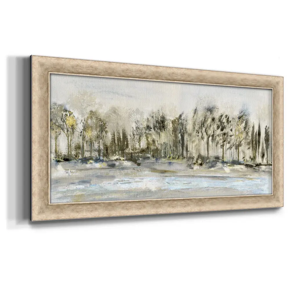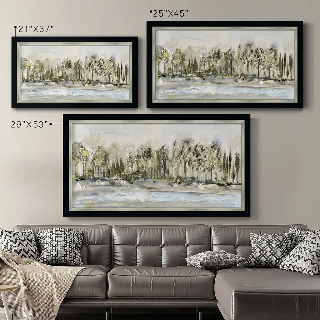 Debruce Tree Line Premium Framed Canvas- Ready to Hang A Premium Framed Canvas created to last. Framed in distressed wood and available in an array of sizes and colors Featuring a beveled a solid wood stretcher bar, each piece comes ready to hand 3 SIZES AVAILABLE 21''X37'' - Overall Size 25''X45'' - Overall Size 29''x53'' - Overall Size Each piece is made to order. Each piece comes with hanging hardware. Made in the USA Ready to Hang Giclee Paper Print Acrylic Glass Beveled Matt Board