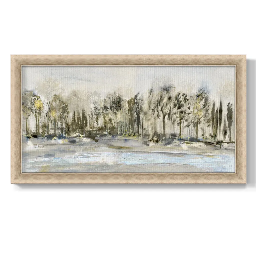 Debruce Tree Line Premium Framed Canvas- Ready to Hang A Premium Framed Canvas created to last. Framed in distressed wood and available in an array of sizes and colors Featuring a beveled a solid wood stretcher bar, each piece comes ready to hand 3 SIZES AVAILABLE 21''X37'' - Overall Size 25''X45'' - Overall Size 29''x53'' - Overall Size Each piece is made to order. Each piece comes with hanging hardware. Made in the USA Ready to Hang Giclee Paper Print Acrylic Glass Beveled Matt Board