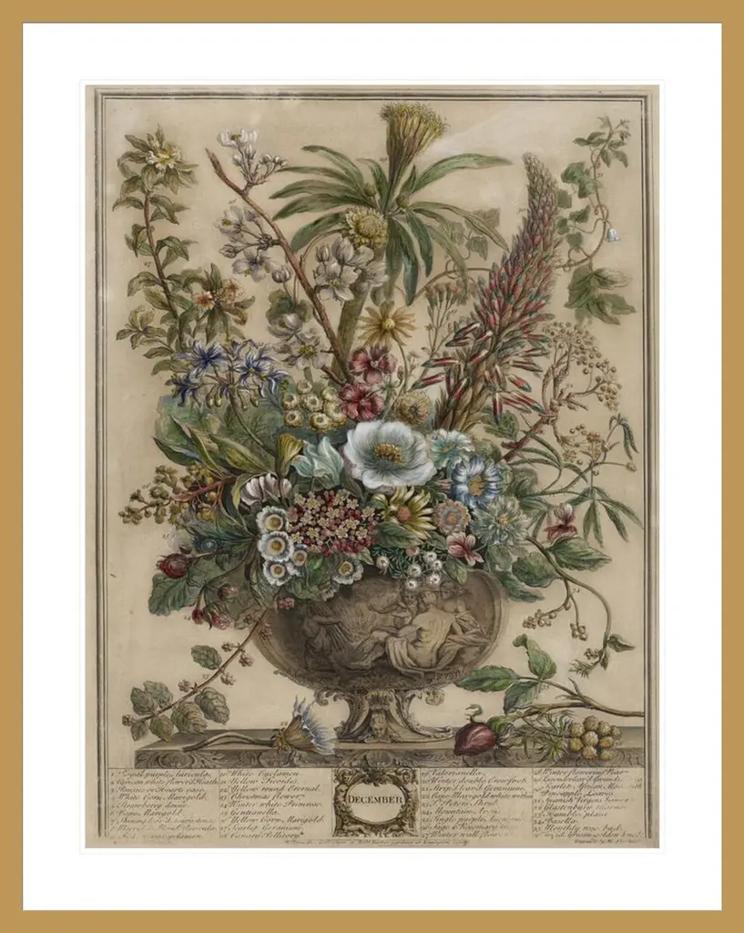 December, The Twelve Months Of Flowers By Henry Fletcher Framed Print