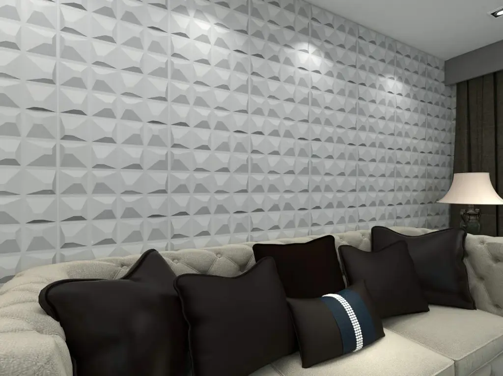 PVC 3d wall panel is an exciting wall material that offers a dramatic alternative to traditional flat wall panels. Combine 3d wall panels with creative lighting and the results are spectacular.3D wall panels are ideal wall covering products that widely used in interior wall decoration. they are great solutions to ugly, stubborn problematic wall, ceiling or any surface that needs covering.Such as living room, bedroom, kitchen room, TV background, feature walls and ceiling in house decoration; company logo wall, meeting room, lobby backdrop, reception desk front function room in office, restaurant, cafes, cinema and night clubs decoration. Other than creating a stunning visual effect for wall.Color: Matte WhiteMaterial: PVC1.Measure the wall and plan the design2.Adhere with All-purpose adhesive glue (Tilebond made in USA recommended, or using Power Grab adhesive (very inexpensive and available at any hardware store))3.Priming4.Fill the gaps5.Painting
