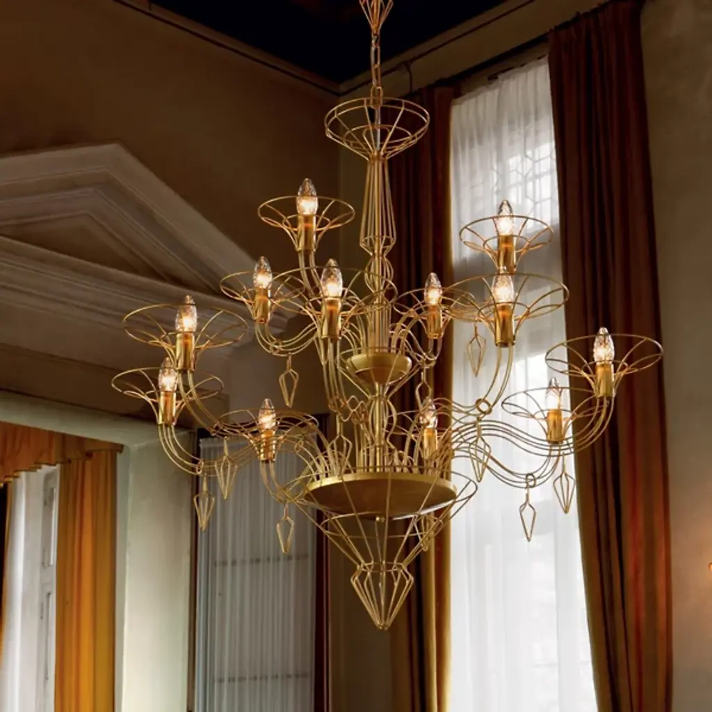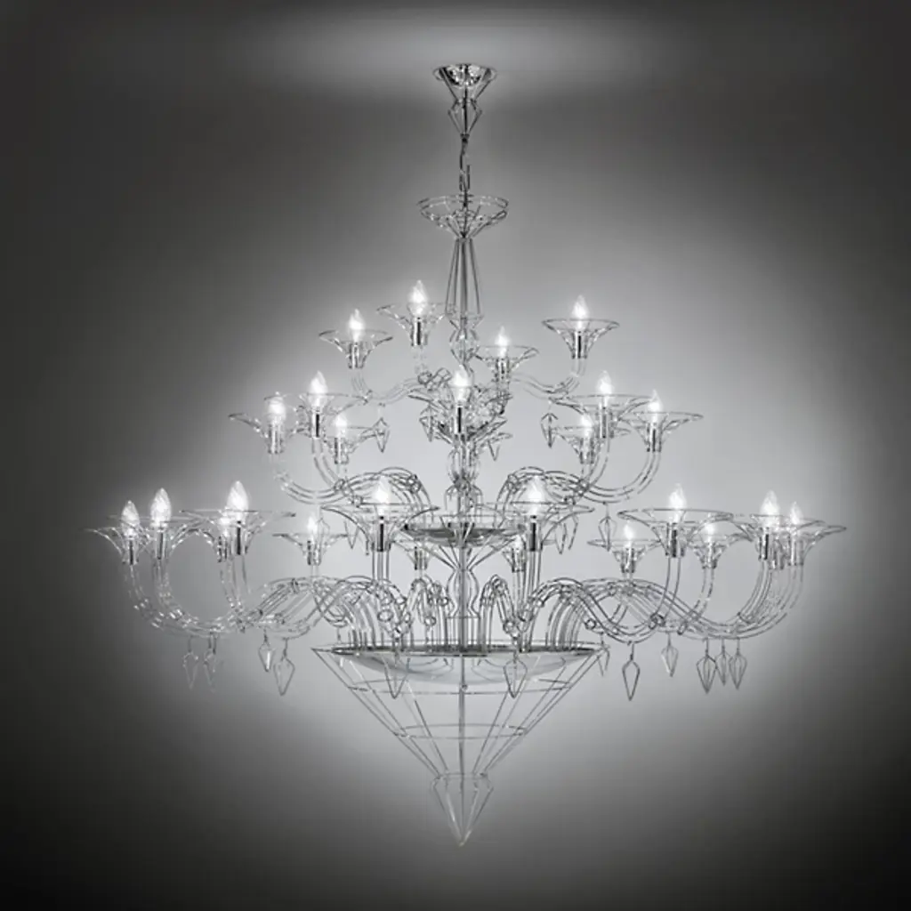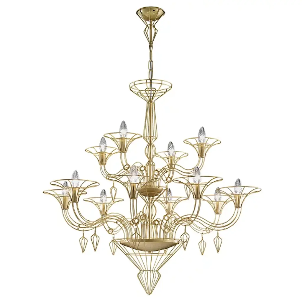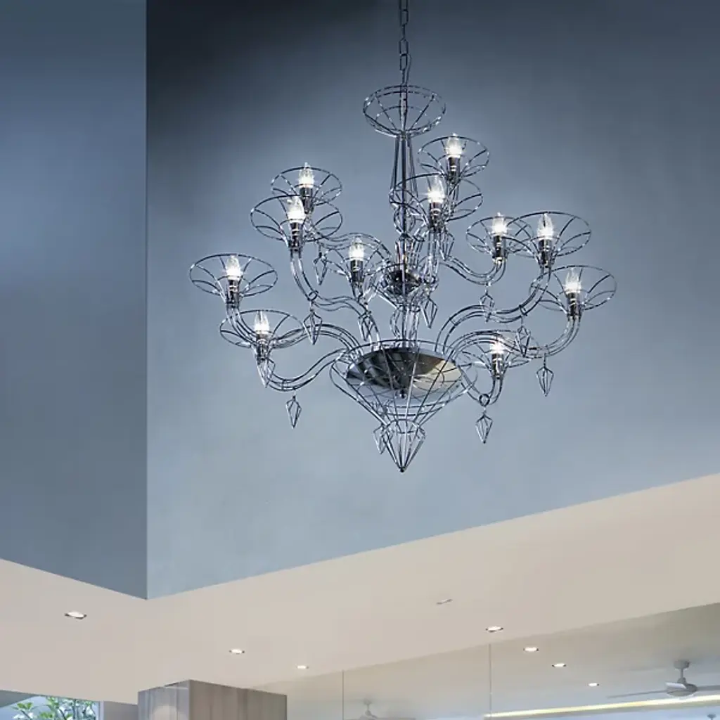 The Dedalo Multi-Tier Chandelier from Metal Lux is a beautiful sketch of the traditional Murano chandelier, drawn with intricate metalwork. The chandelier’s inspiration speaks to Studio Tecnico Metallux’s Italian heritage. The artisanal studio’s mission is to create clean, elegant forms that trace back to traditional lighting. Here, Metal Lux craftsmen stun by capturing the great attention to detail and shimmering quality of blown glass with metal. Curved, fine wire shapes cascade to create the evocative body. In tiers, upsurging arms hold tapered shapes that suggest classic shades. Together with the shades, the openness of the chandelier enhances the radiant quality of the light. This light presents the room with a comfortable aura and heavenly silhouette.