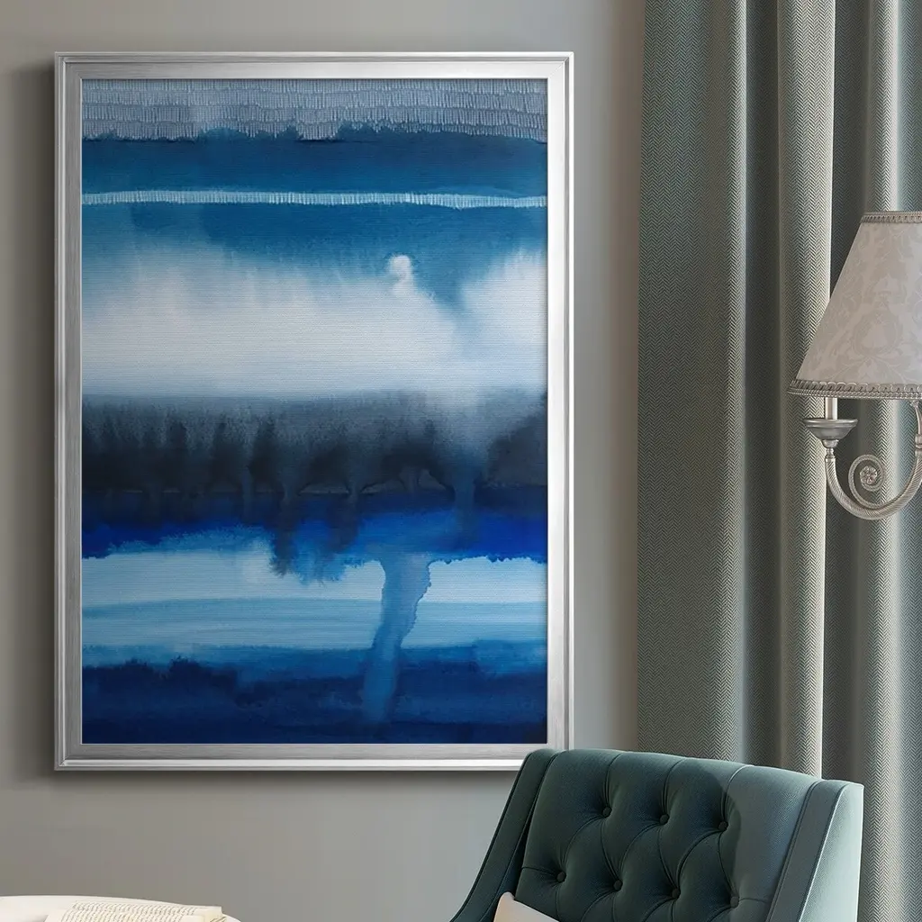 Deep Blue Shore I Premium Framed Print - Ready to Hang A Premium Framed Print created to last. Framed in distressed wood and available in an array of sizes and colors Featuring a beveled a solid wood stretcher bar, each piece comes ready to hand 4 SIZES AVAILABLE 30.5''X42.5'' - Overall Size 26.5'X36.5'' - Overall Size 22.5''x30.5'' - Overall Size 18.5''x24.5'' - Overall Size Each piece is made to order. Each piece comes with hanging hardware. Made in the USA Ready to Hang