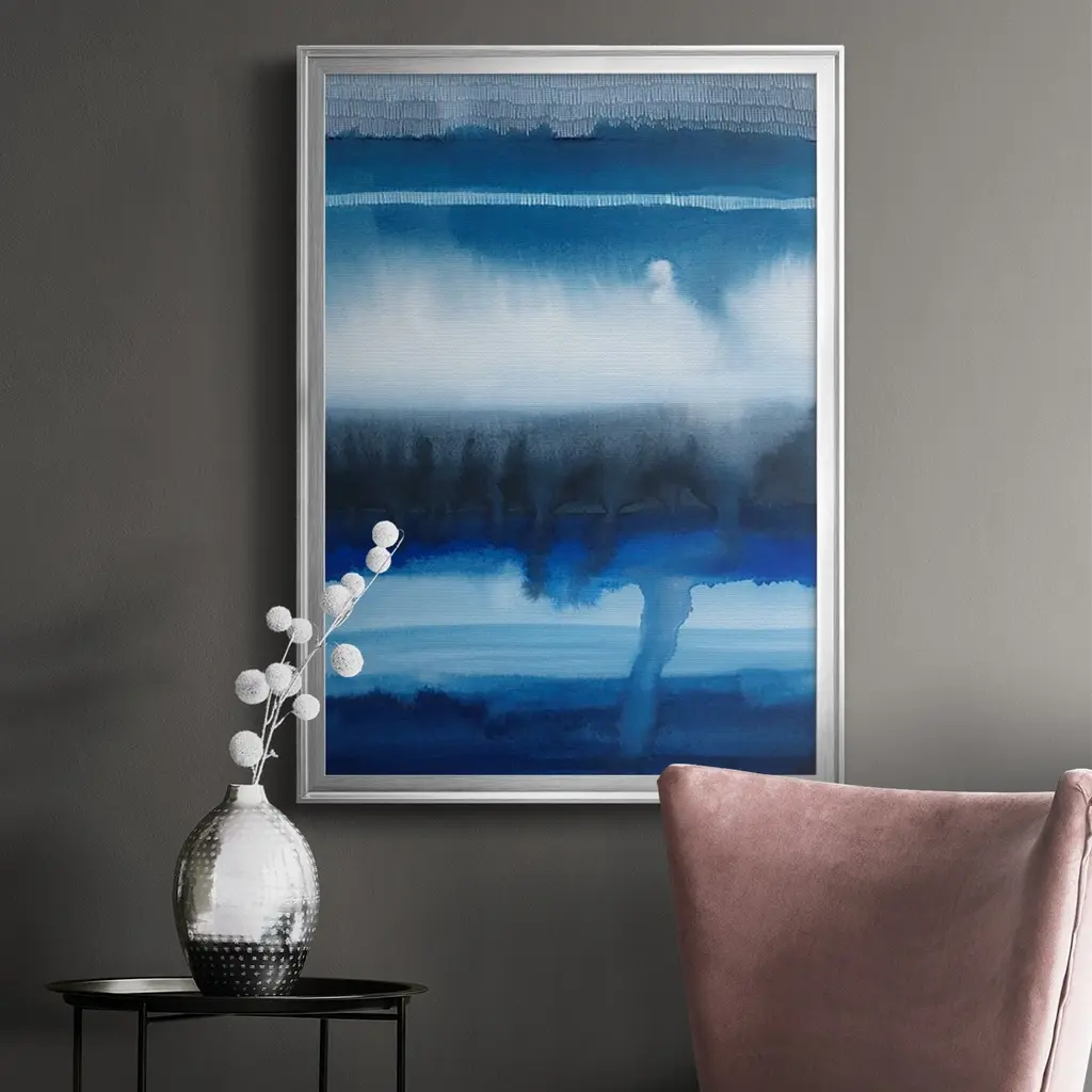 Deep Blue Shore I Premium Framed Print - Ready to Hang A Premium Framed Print created to last. Framed in distressed wood and available in an array of sizes and colors Featuring a beveled a solid wood stretcher bar, each piece comes ready to hand 4 SIZES AVAILABLE 30.5''X42.5'' - Overall Size 26.5'X36.5'' - Overall Size 22.5''x30.5'' - Overall Size 18.5''x24.5'' - Overall Size Each piece is made to order. Each piece comes with hanging hardware. Made in the USA Ready to Hang