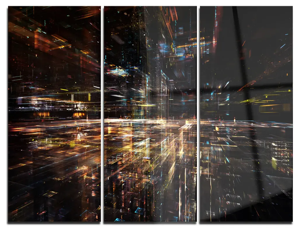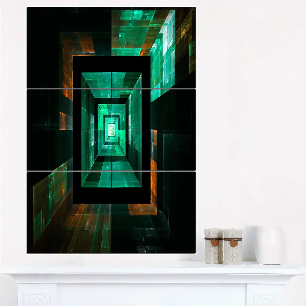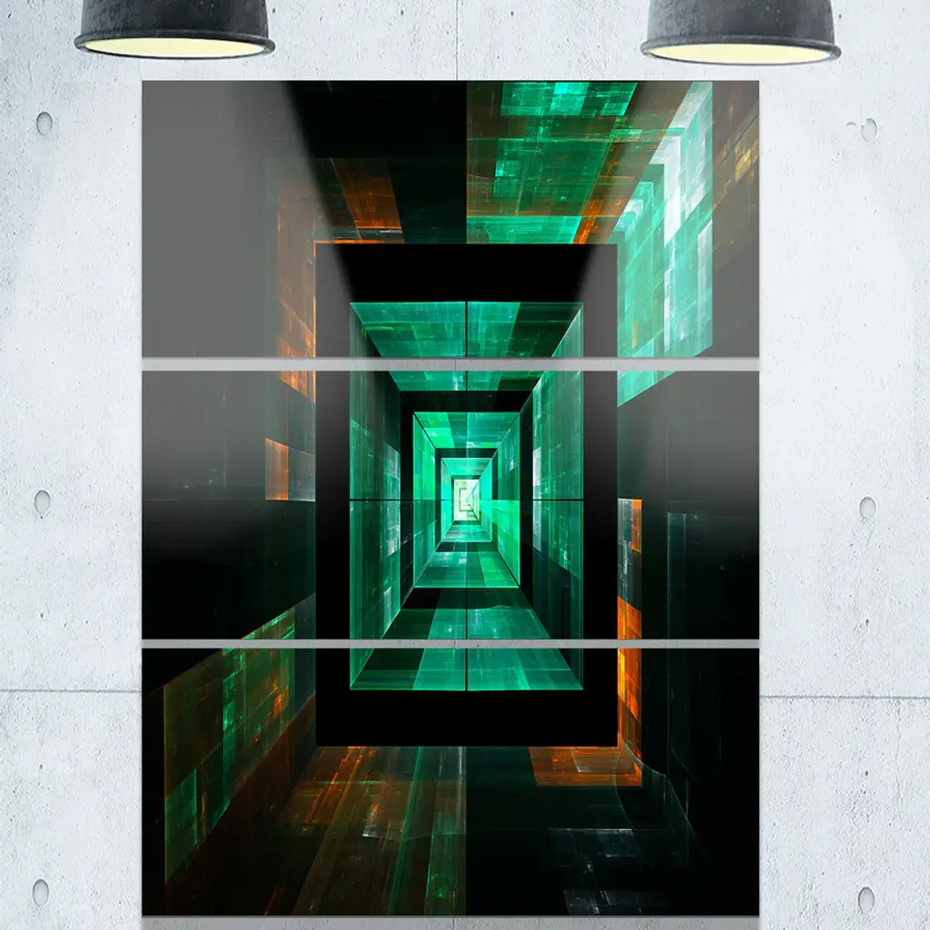 "Deep Green Infinite Cube" Metal Wall Art, 3 Panels, 28"x36"