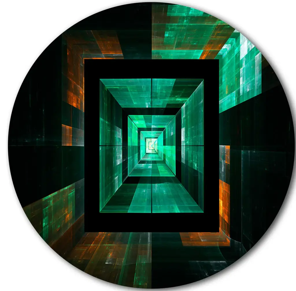 Bring contemporary abstraction to your home with this large 28W x 36H Metal Wall Art. This Deep Green Infinite Cube Metal Artwork makes it the focal point of any room or office. - White gloss coating ensures colors are extra vibrant with light reflection.- Aluminum grade sheet metal with 1-inch mounting frame on the back giving the illusion that the artwork is floating on the wall.- Mounting brackets are included along with instructions.- High quality digital images are created directly into a glossy aluminum panel producing a stunning and captivating print into the glossy finish of the metal.- Water, fire and scratch resistant HD aluminum panels.- Looks better than any photo paper and guaranteed to last at least 20 years- Easy to clean with a microfiber cloth. Colors are far superior to regular canvas art. - Easy to hang