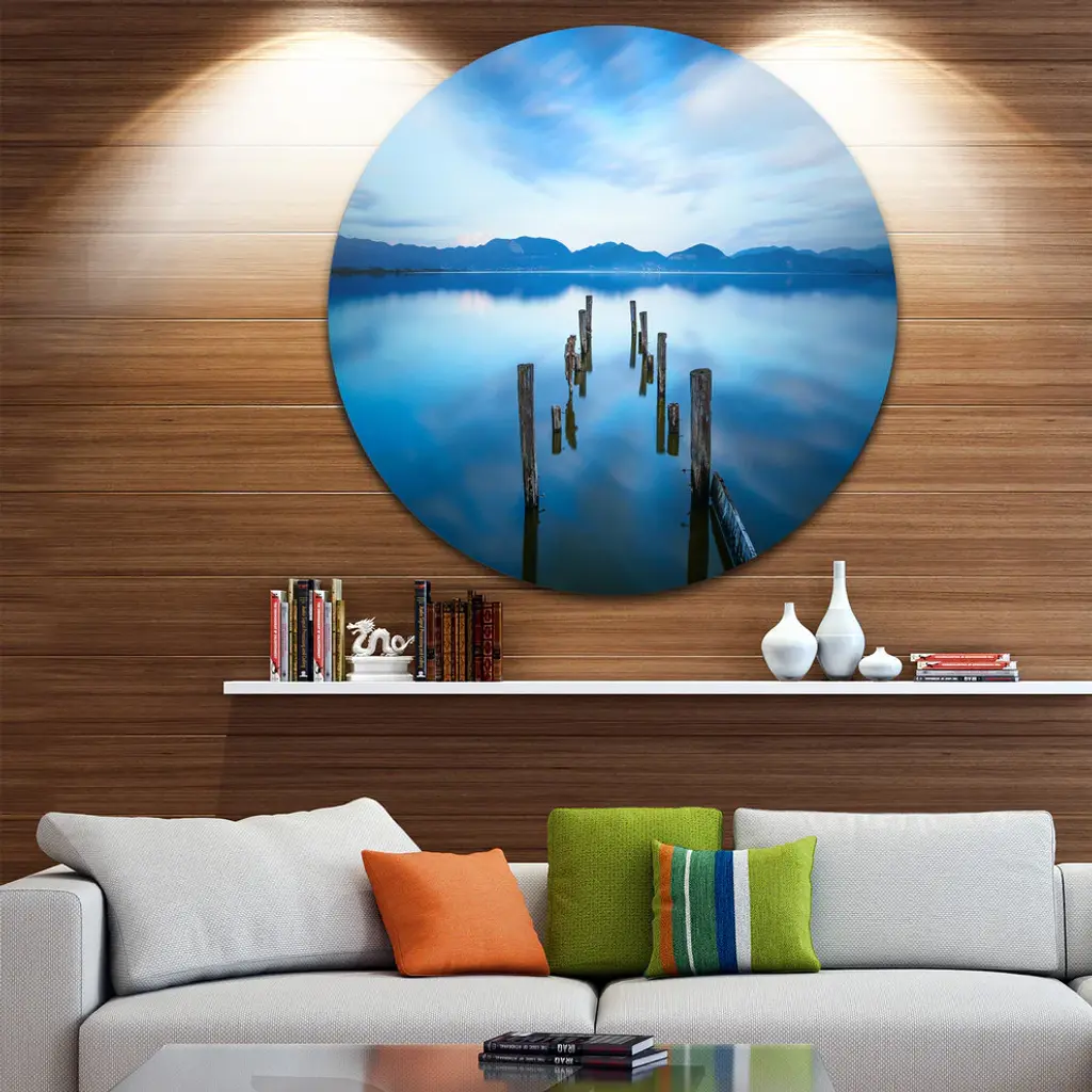 Bring Contemporary Abstraction to your home with this large Circle Metal wall art. This Deep into the Sea Pier Metal Artwork makes it the focal point of any room or office. - White Gloss Coating ensures colors are extra vibrant with light reflection.- Aluminum grade Sheet Metal with 1 inch mounting frame on the back giving the illusion that the artwork is floating on the wall..- Mounting Brackets are included along with instructions.- High Quality Digital images are created directly into a glossy aluminum panel producing a stunning and captivating print into the glossy finish of the metal.- Water, Fire and Scratch resistant HD Aluminum panels.- Looks better than any photo paper and guaranteed to last at least 20 years- Easy to clean with a microfiber cloth. Colors are far superior to regular Canvas Art. - Easy to Hang