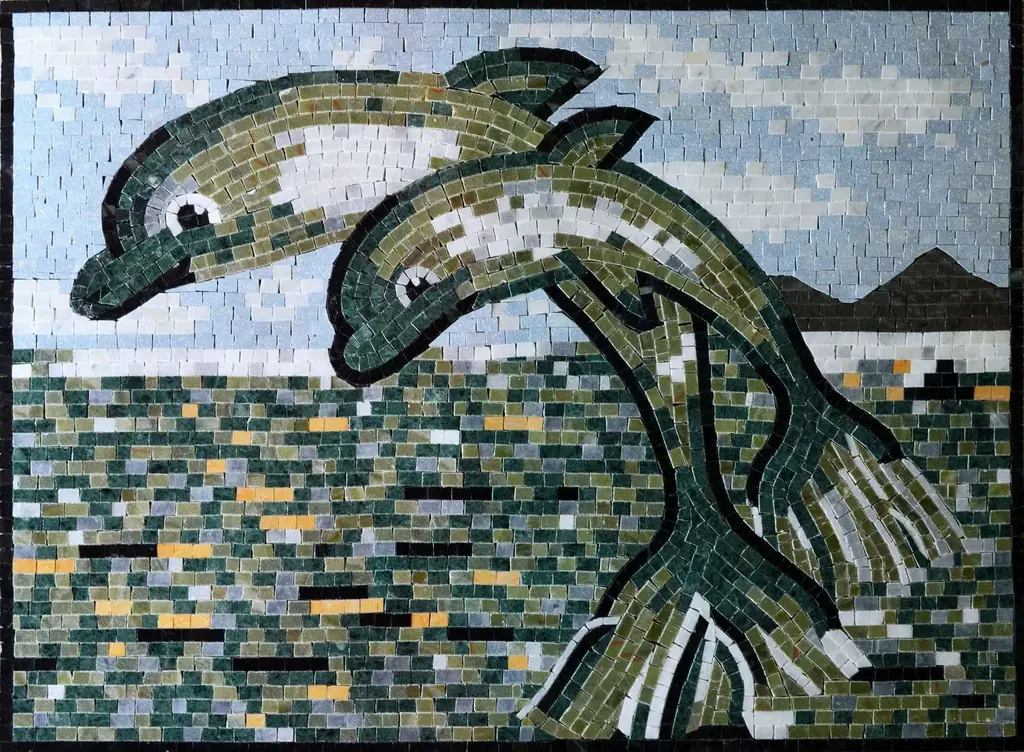 Deep Ocean And Dolphins Marble Mosaic Art - 130cm X 80cm (51" X 31")