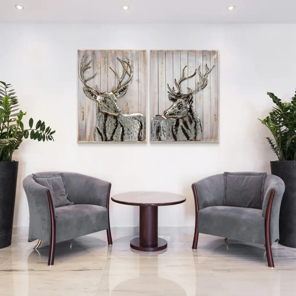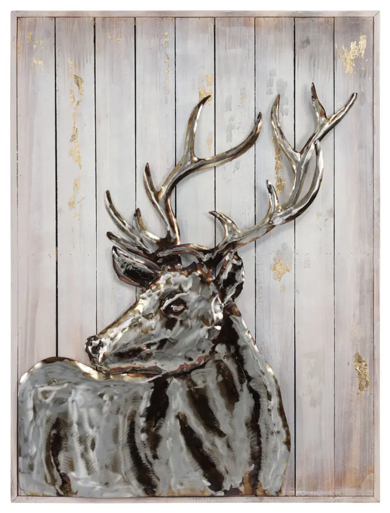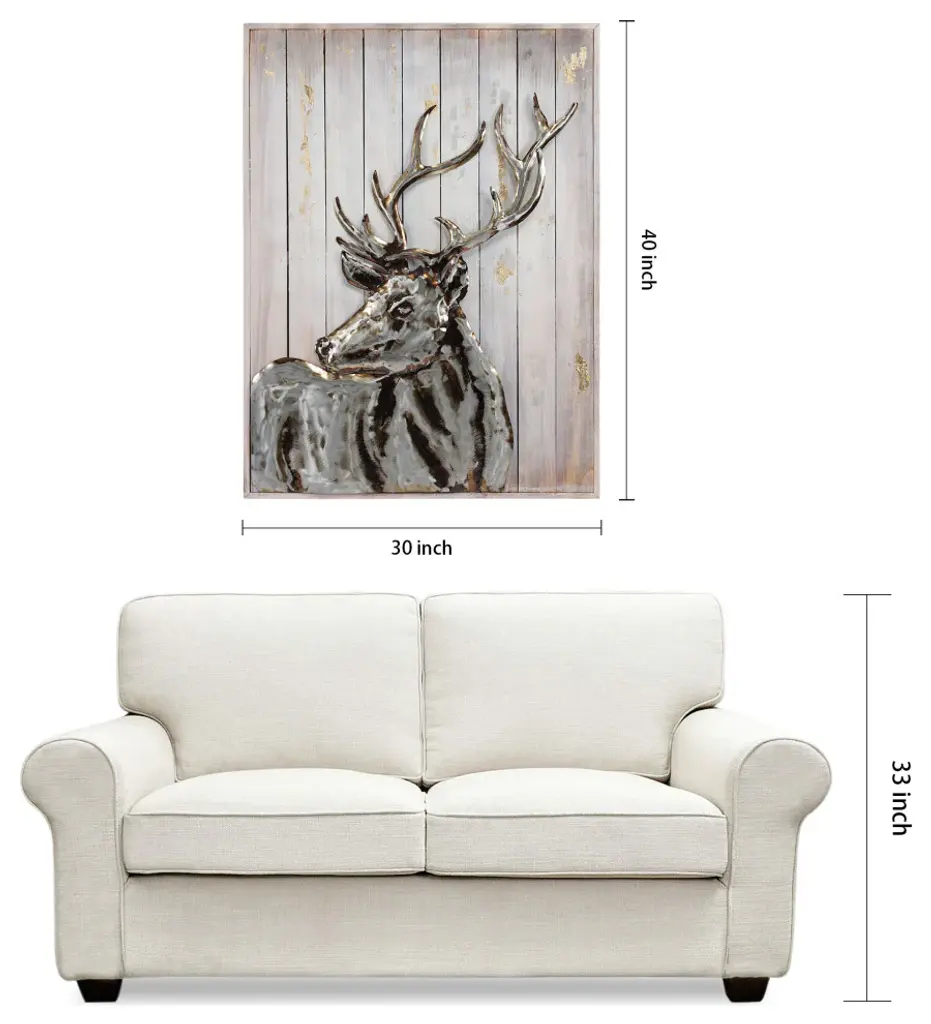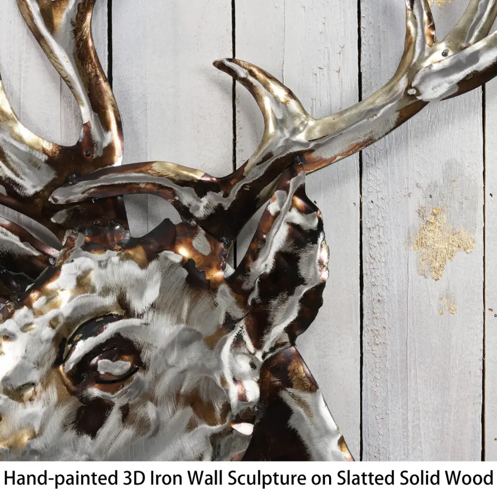 "Deer 2" Hand Painted Iron Wall Sculpture On Slatted Solid Wood Wall Art 40"x30"
