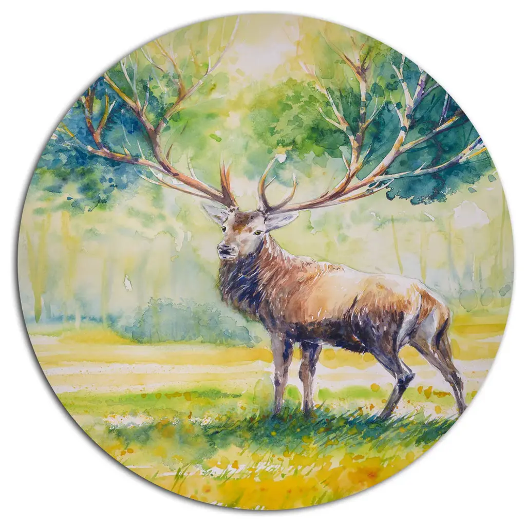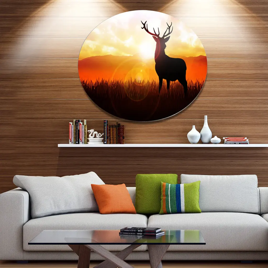 Bring Contemporary Abstraction to your home with this large Circle Metal wall art. This Deer on Meadow During Sunrise Metal Artwork makes it the focal point of any room or office. - White Gloss Coating ensures colors are extra vibrant with light reflection.- Aluminum grade Sheet Metal with 1 inch mounting frame on the back giving the illusion that the artwork is floating on the wall..- Mounting Brackets are included along with instructions.- High Quality Digital images are created directly into a glossy aluminum panel producing a stunning and captivating print into the glossy finish of the metal.- Water, Fire and Scratch resistant HD Aluminum panels.- Looks better than any photo paper and guaranteed to last at least 20 years- Easy to clean with a microfiber cloth. Colors are far superior to regular Canvas Art. - Easy to Hang