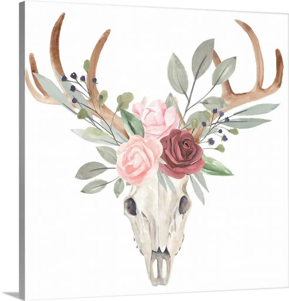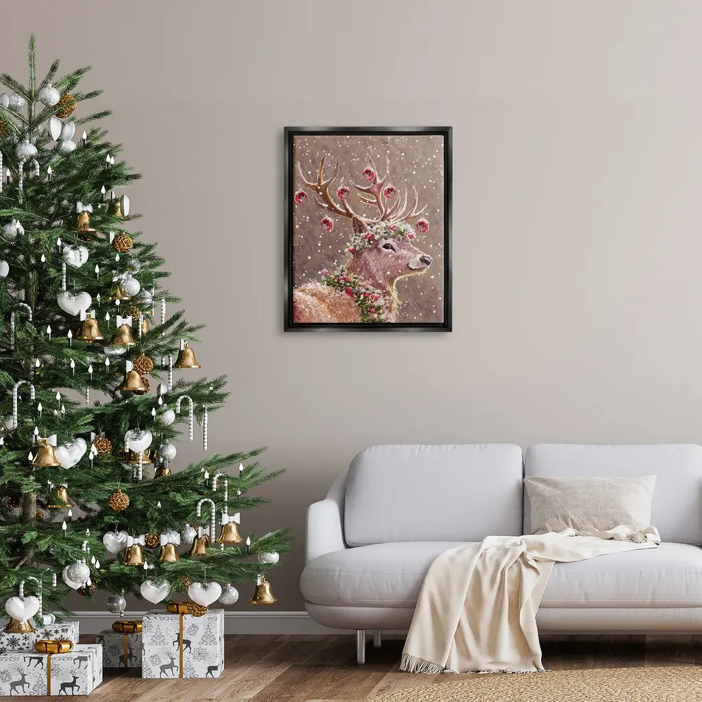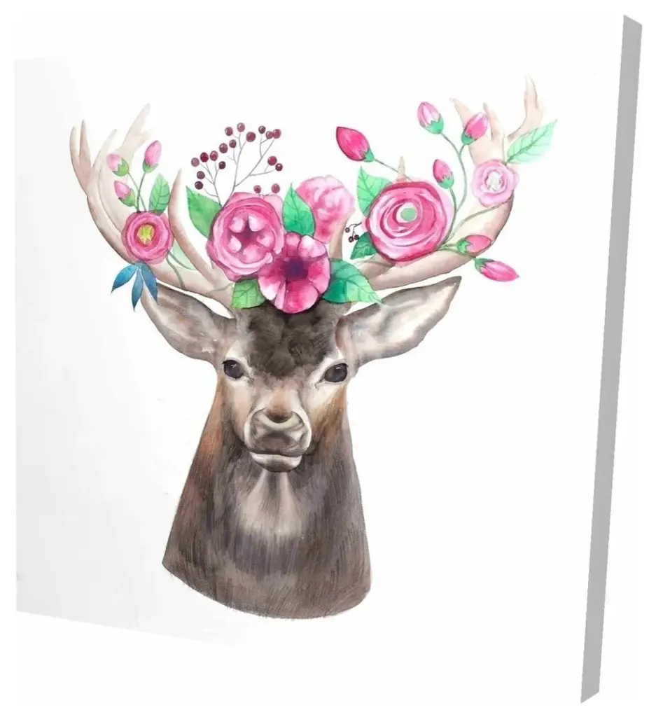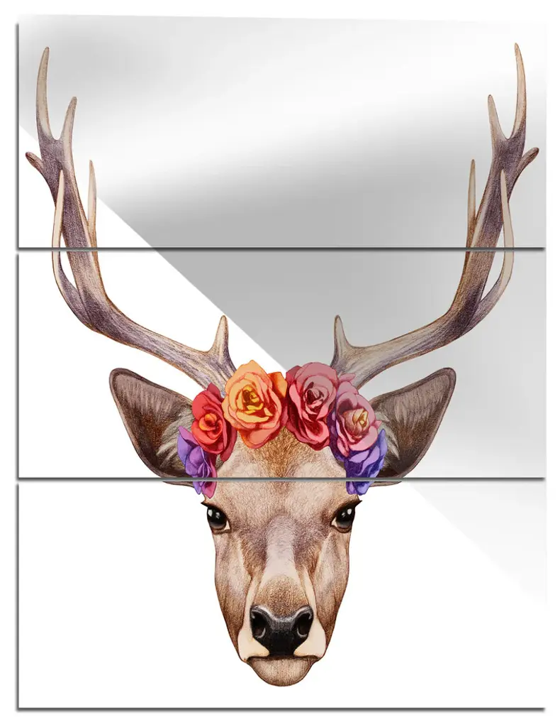 Deer Portrait With Floral Head, Deer Round Wall Art, 11"