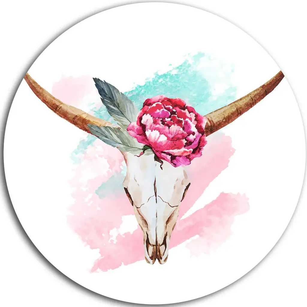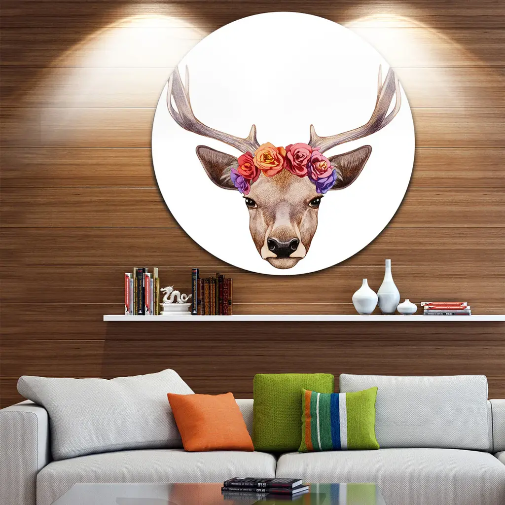 Bring Contemporary Abstraction to your home with this large Circle Metal wall art. This Designart-Deer Portrait with Floral Head Metal Artwork makes it the focal point of any room or office. - White Gloss Coating ensures colors are extra vibrant with light reflection.- Aluminum grade Sheet Metal with 1 inch mounting frame on the back giving the illusion that the artwork is floating on the wall..- Mounting Brackets are included along with instructions.- High Quality Digital images are created directly into a glossy aluminum panel producing a stunning and captivating print into the glossy finish of the metal.- Water, Fire and Scratch resistant HD Aluminum panels.- Looks better than any photo paper and guaranteed to last at least 20 years- Easy to clean with a microfiber cloth. Colors are far superior to regular Canvas Art. - Easy to Hang