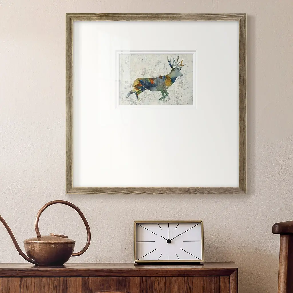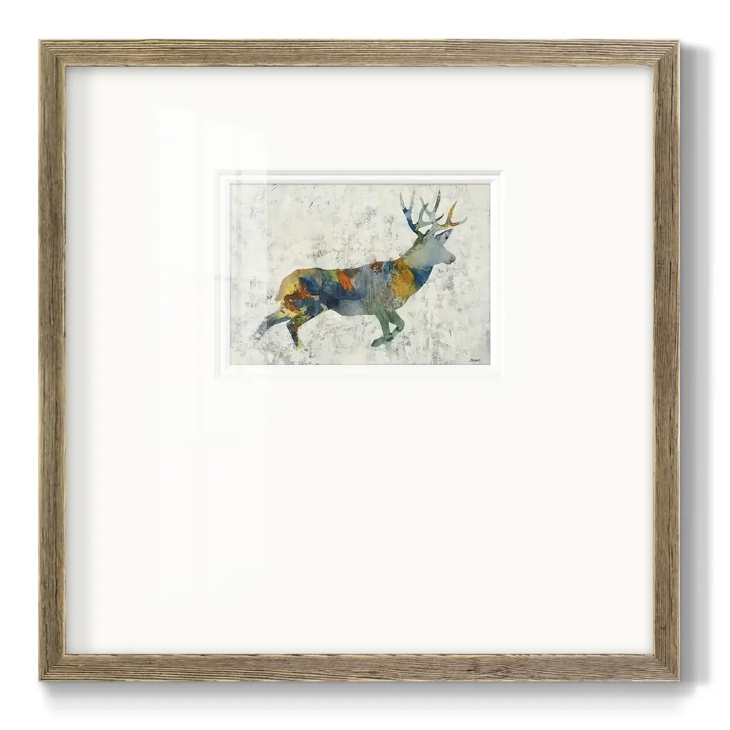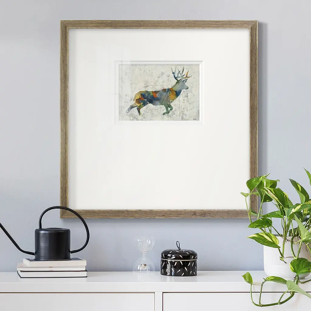 Deer TotemPremium Framed Print A framed cold pressed paper print featuring superior double matting and quality frame. 2 SIZES AVAILABLE 16''X16''' - Overall Size 20''X20''' - Overall Size Each piece is made to order. Each piece comes with hanging hardware. Made in the USA Ready to Hang Giclee Paper Print Plexiglass Beveled Matt Board Double Matte Board