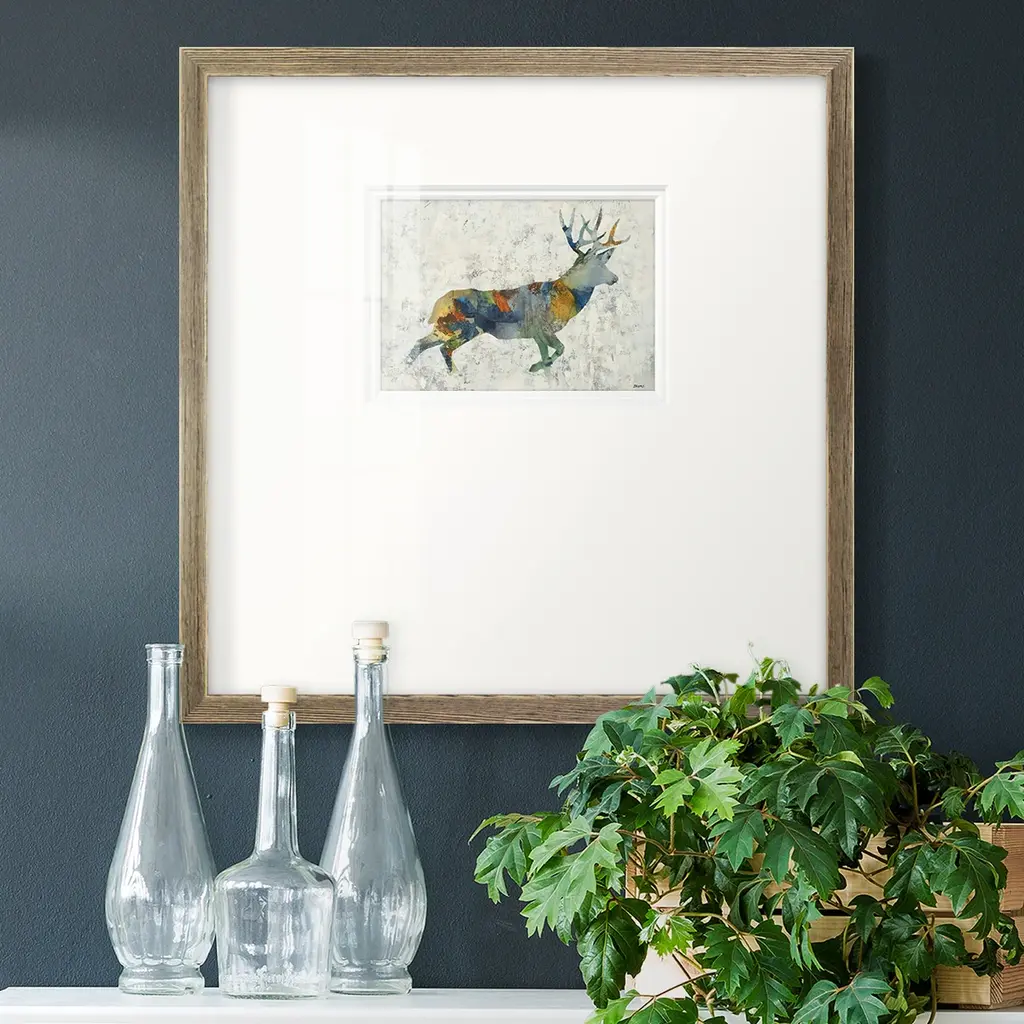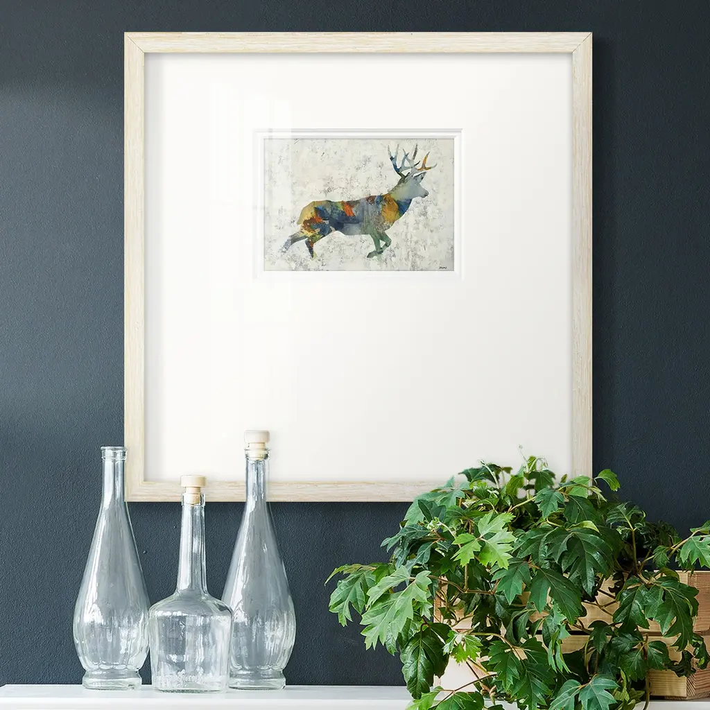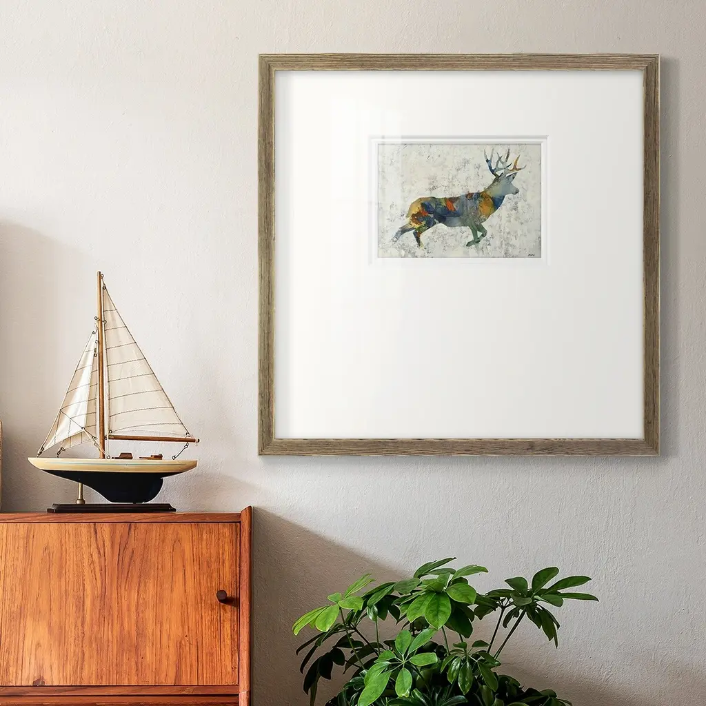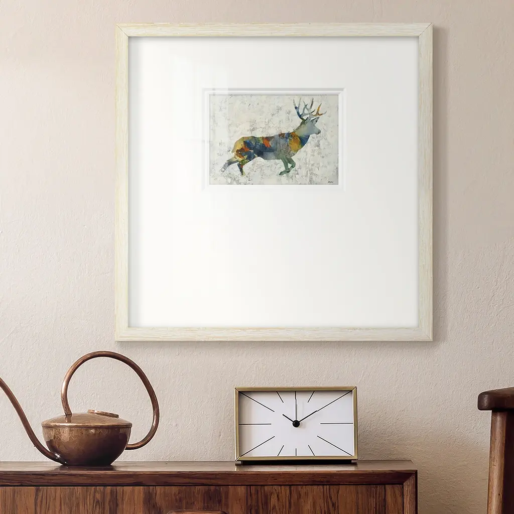 Deer TotemPremium Framed Print A framed cold pressed paper print featuring superior double matting and quality frame. 2 SIZES AVAILABLE 16''X16''' - Overall Size 20''X20''' - Overall Size Each piece is made to order. Each piece comes with hanging hardware. Made in the USA Ready to Hang Giclee Paper Print Plexiglass Beveled Matt Board Double Matte Board