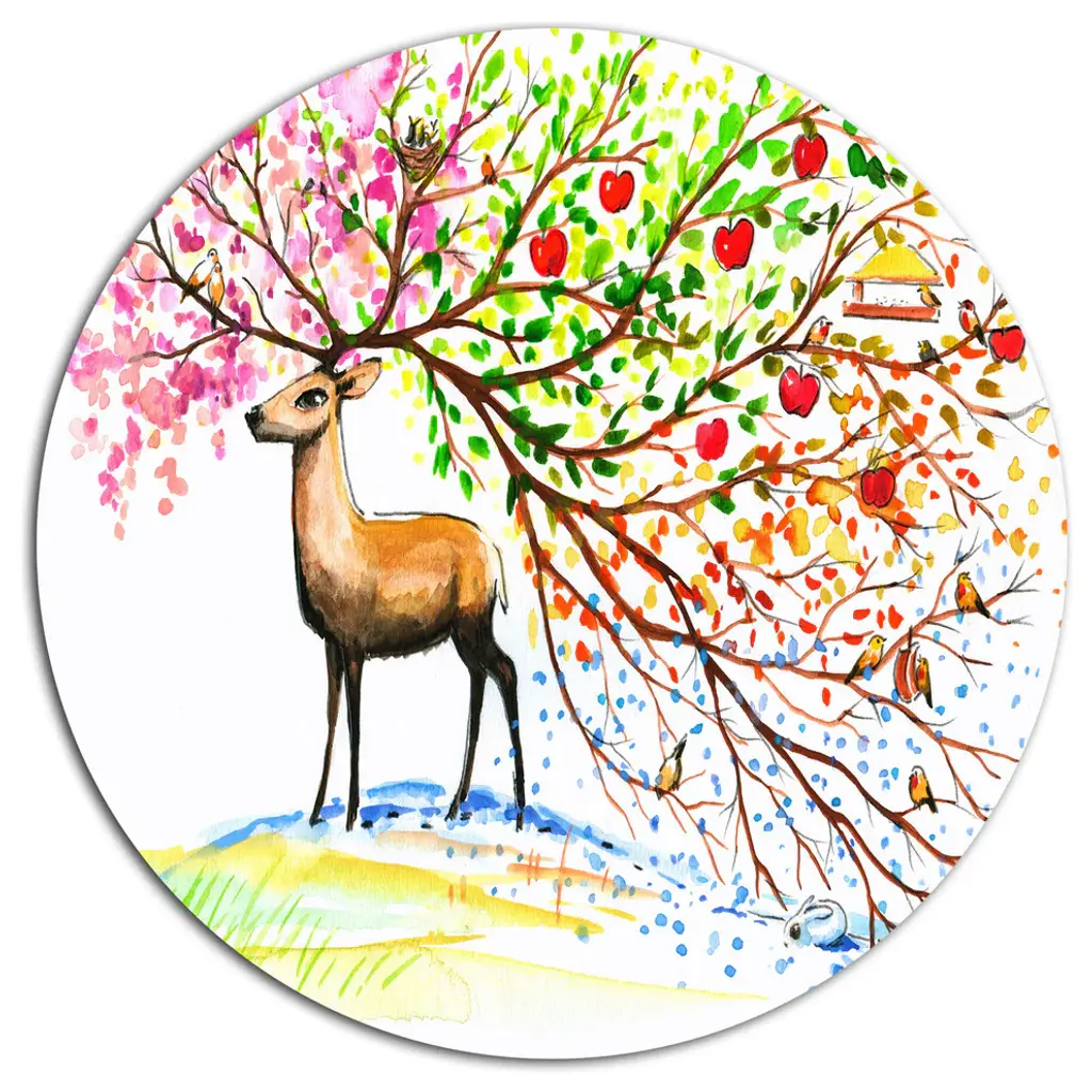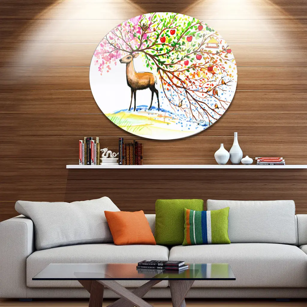 Deer With Beautiful Horn, Animal Round Wall Art, 11"