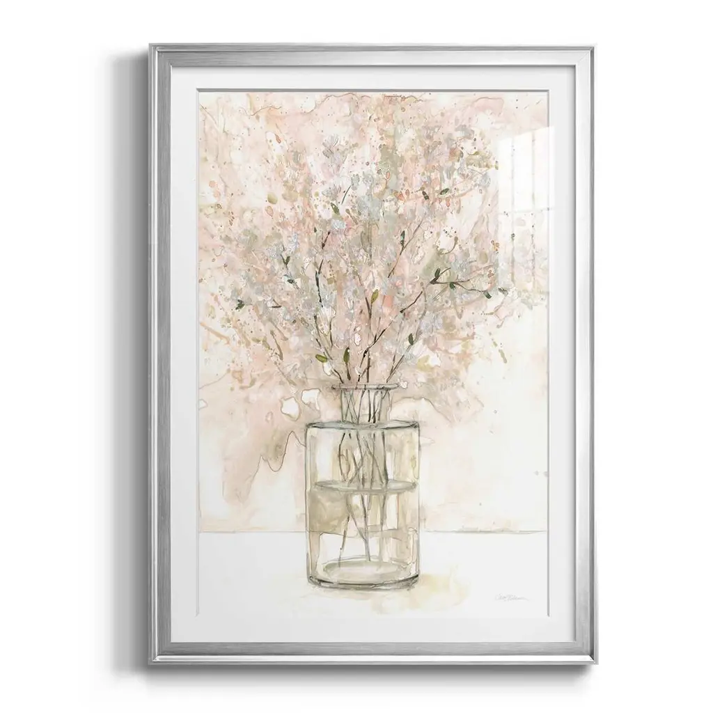 Delicate Arrangement I Premium Framed Print - Ready to Hang A Premium Framed Print created to last. Framed in distressed wood and available in an array of sizes and colors Featuring a beveled a solid wood stretcher bar, each piece comes ready to hand 4 SIZES AVAILABLE 30.5''X42.5'' - Overall Size 26.5'X36.5'' - Overall Size 22.5''x30.5'' - Overall Size 18.5''x24.5'' - Overall Size Each piece is made to order. Each piece comes with hanging hardware. Made in the USA Ready to Hang Giclee Paper Print Acrylic Glass Beveled Matt Board