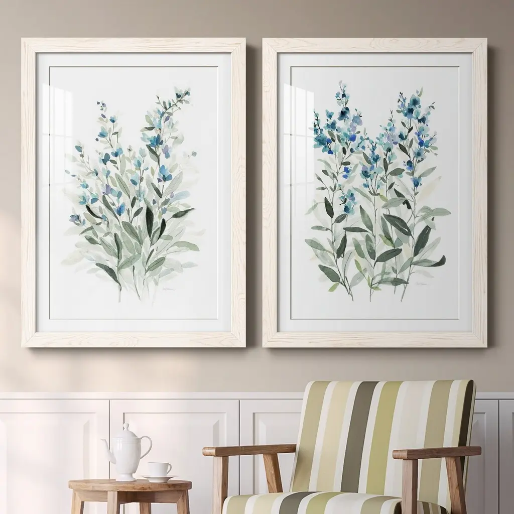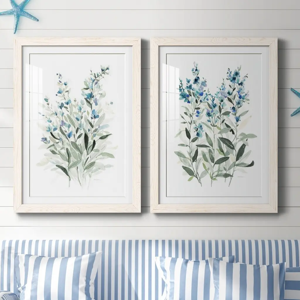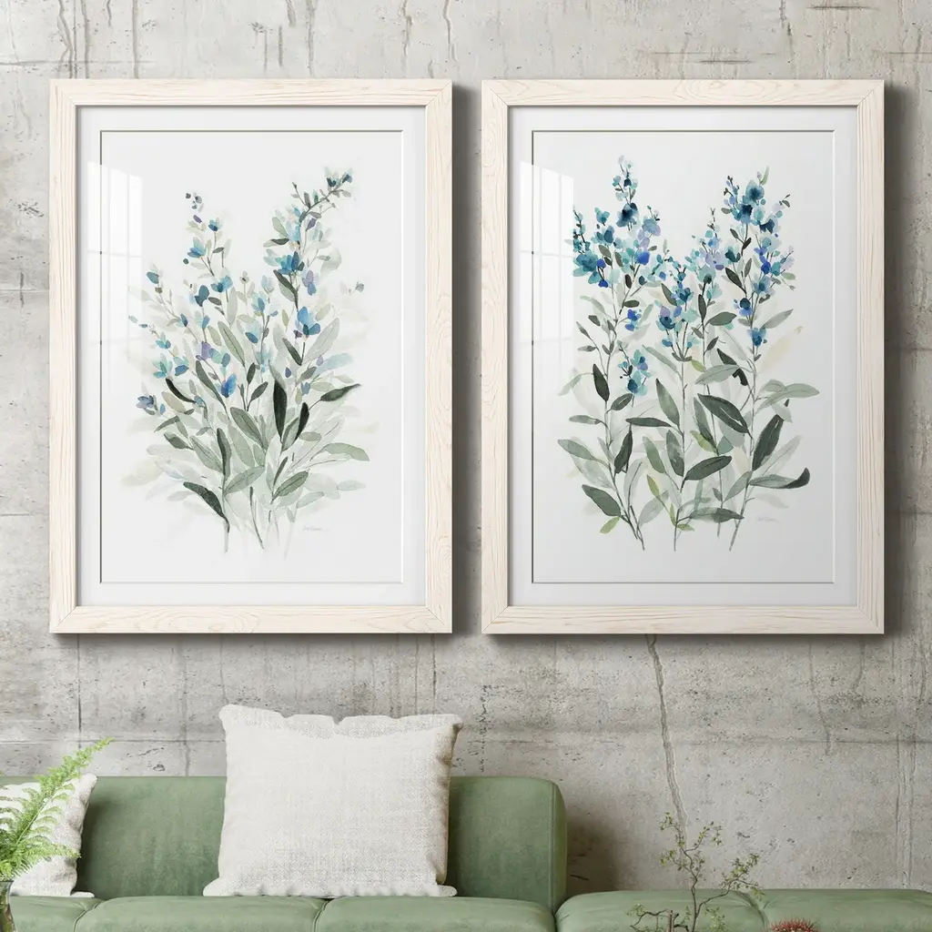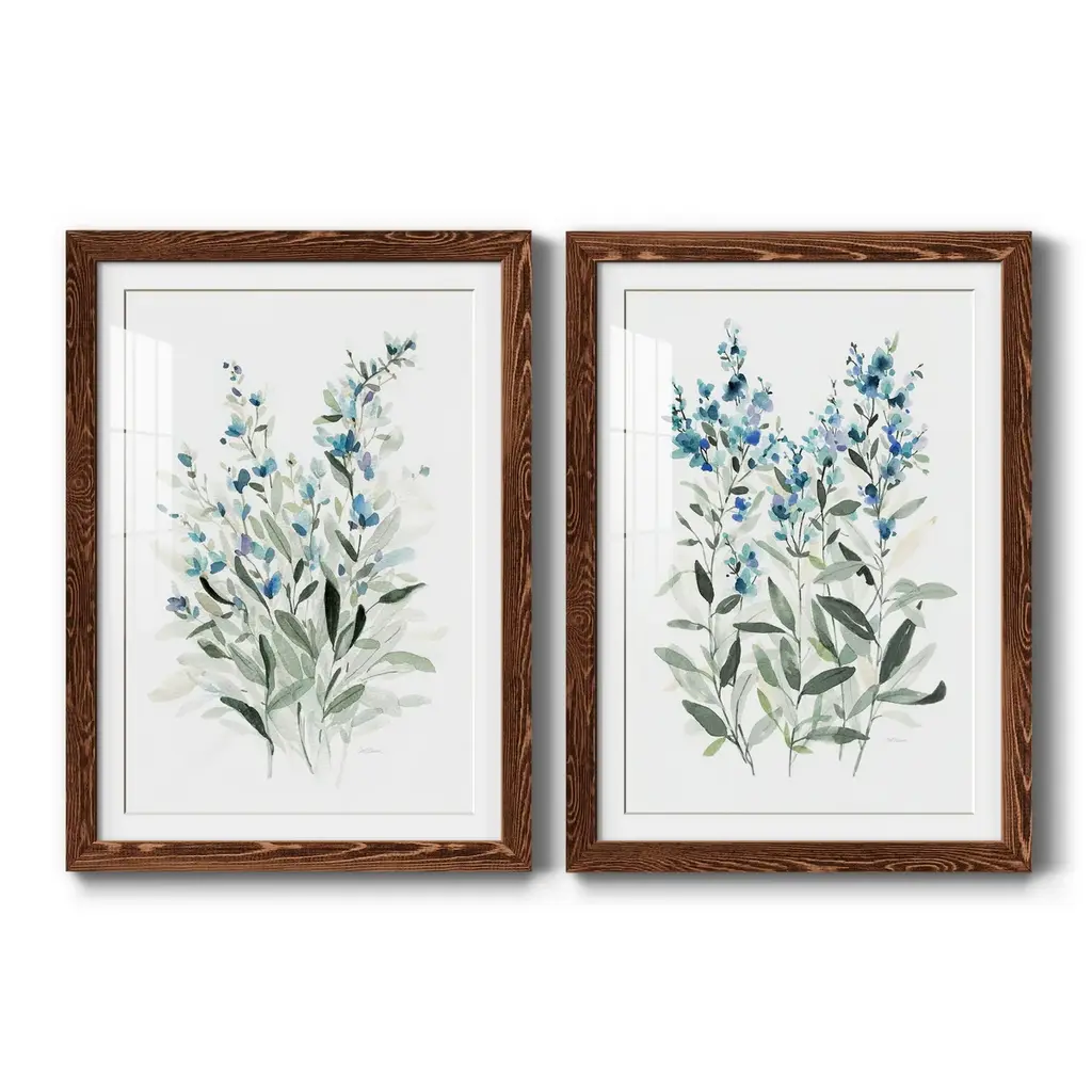 Delicate Blue Botanical I-Premium Framed Print - Ready to Hang Framed in distressed wood and available in an array of sizes and colors Each piece is joined and assembled by hand and comes ready to hang 2 INCH BEVELED MATTE BOARD PLEXIGLASS COVERING READY TO HANG MADE IN THE USA SOLID WOOD FRAME MADE IN USA FADE RESISTANT GICLEE PRINTING on Canvas or Paper