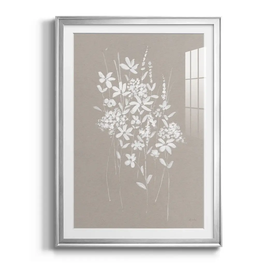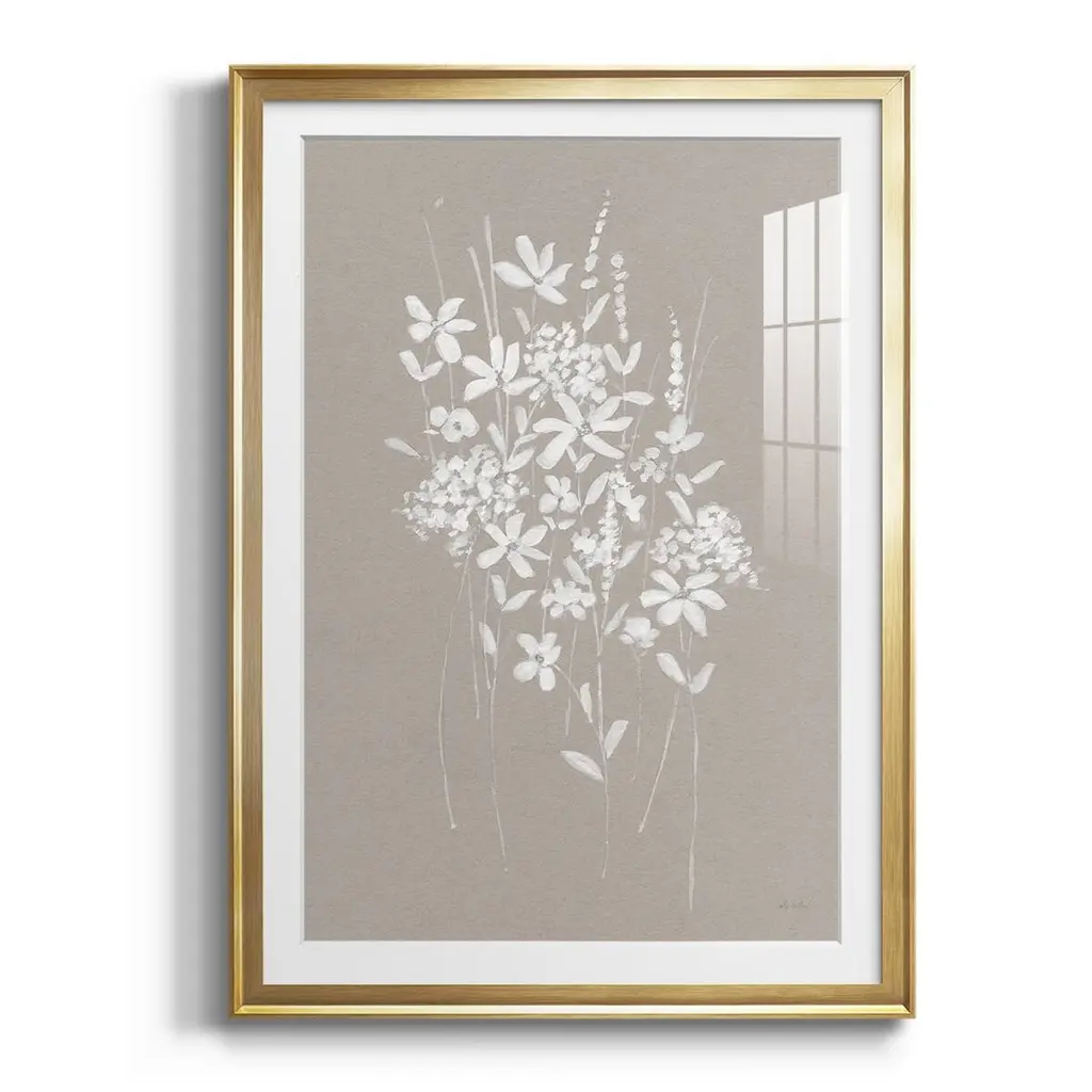 Delicate Botanicals I Premium Framed Print - Ready to Hang A Premium Framed Print created to last. Framed in distressed wood and available in an array of sizes and colors Featuring a beveled a solid wood stretcher bar, each piece comes ready to hand 4 SIZES AVAILABLE 30.5''X42.5'' - Overall Size 26.5'X36.5'' - Overall Size 22.5''x30.5'' - Overall Size 18.5''x24.5'' - Overall Size Each piece is made to order. Each piece comes with hanging hardware. Made in the USA Ready to Hang Giclee Paper Print Acrylic Glass Beveled Matt Board