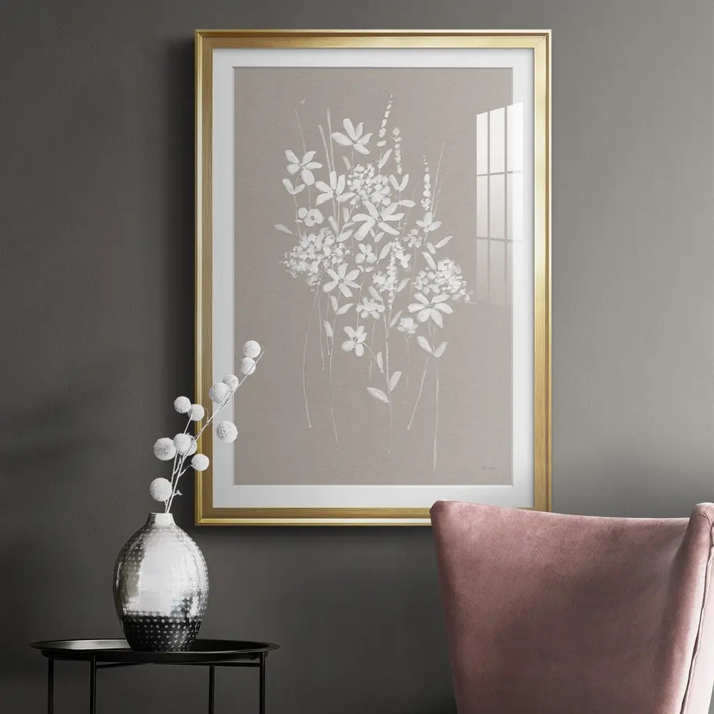 Delicate Botanicals I Premium Framed Print - Ready to Hang A Premium Framed Print created to last. Framed in distressed wood and available in an array of sizes and colors Featuring a beveled a solid wood stretcher bar, each piece comes ready to hand 4 SIZES AVAILABLE 30.5''X42.5'' - Overall Size 26.5'X36.5'' - Overall Size 22.5''x30.5'' - Overall Size 18.5''x24.5'' - Overall Size Each piece is made to order. Each piece comes with hanging hardware. Made in the USA Ready to Hang Giclee Paper Print Acrylic Glass Beveled Matt Board