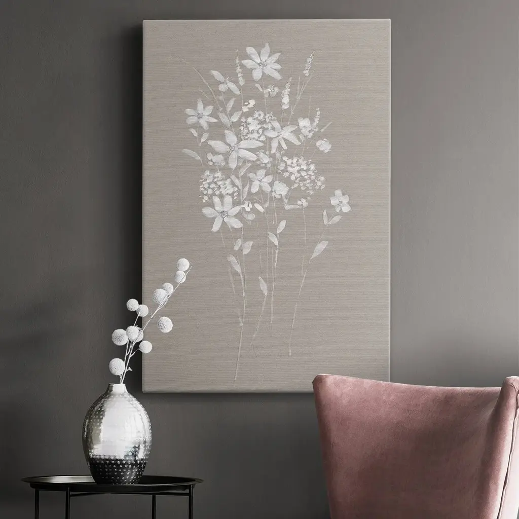 Delicate Botanicals II Premium Gallery Wrapped Canvas - Ready to Hang A premium hand stretched gallery wrapped canvas print created to last. Featuring a beveled a solid wood stretcher bar, each piece comes ready to hand 6 SIZES AVAILABLE 8''X12'' - Overall Size 12''X18'' - Overall Size 18''X27'' - Overall Size 24''x36'' - Overall Size 32''x48'' - Overall Size 40''x60'' - Overall Size Each piece is made to order. Built to Last Each piece comes ready to hang Solid wood stretcher Fade and Water resistant Made domestically