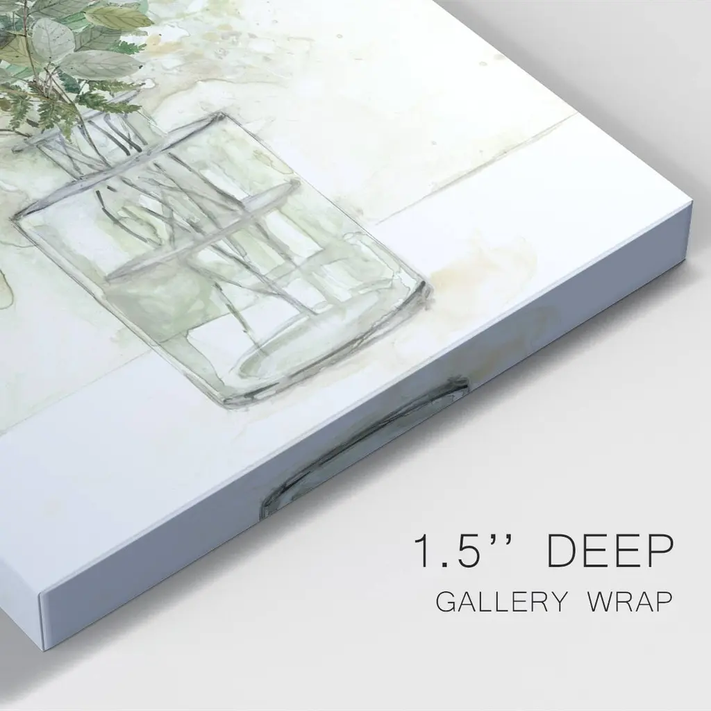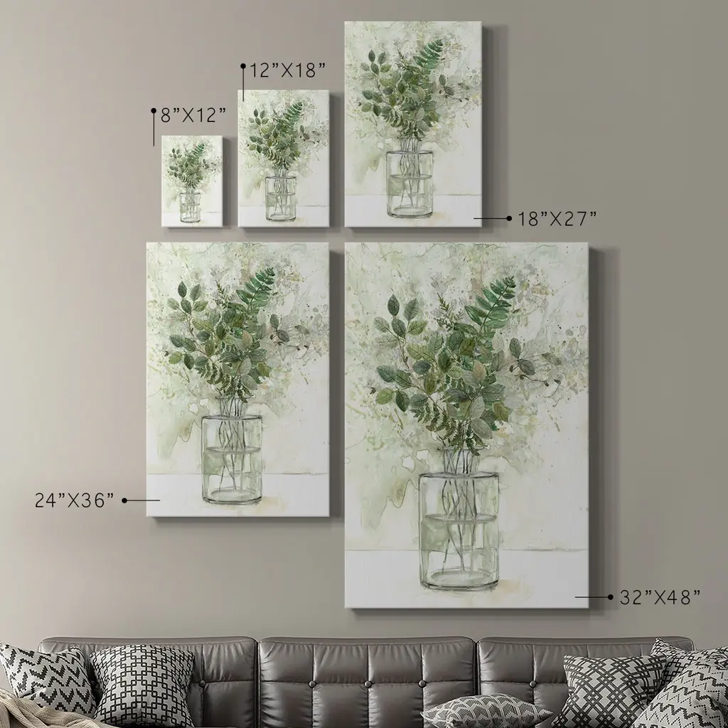 Delicate Greenery I Premium Gallery Wrapped Canvas - Ready to Hang A premium hand stretched gallery wrapped canvas print created to last. Featuring a beveled a solid wood stretcher bar, each piece comes ready to hand 6 SIZES AVAILABLE 8''X12'' - Overall Size 12''X18'' - Overall Size 18''X27'' - Overall Size 24''x36'' - Overall Size 32''x48'' - Overall Size 40''x60'' - Overall Size Each piece is made to order. Built to Last Each piece comes ready to hang Solid wood stretcher Fade and Water resistant Made domestically