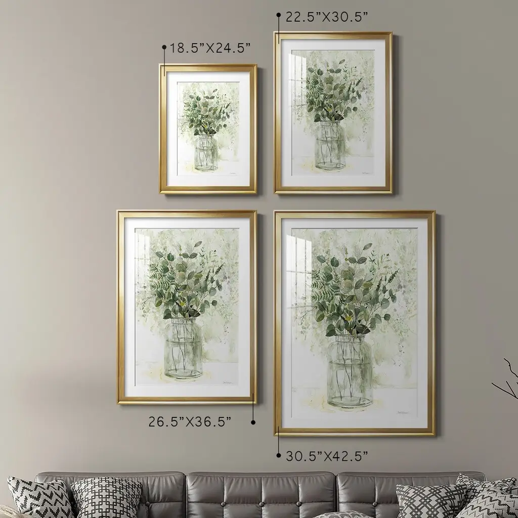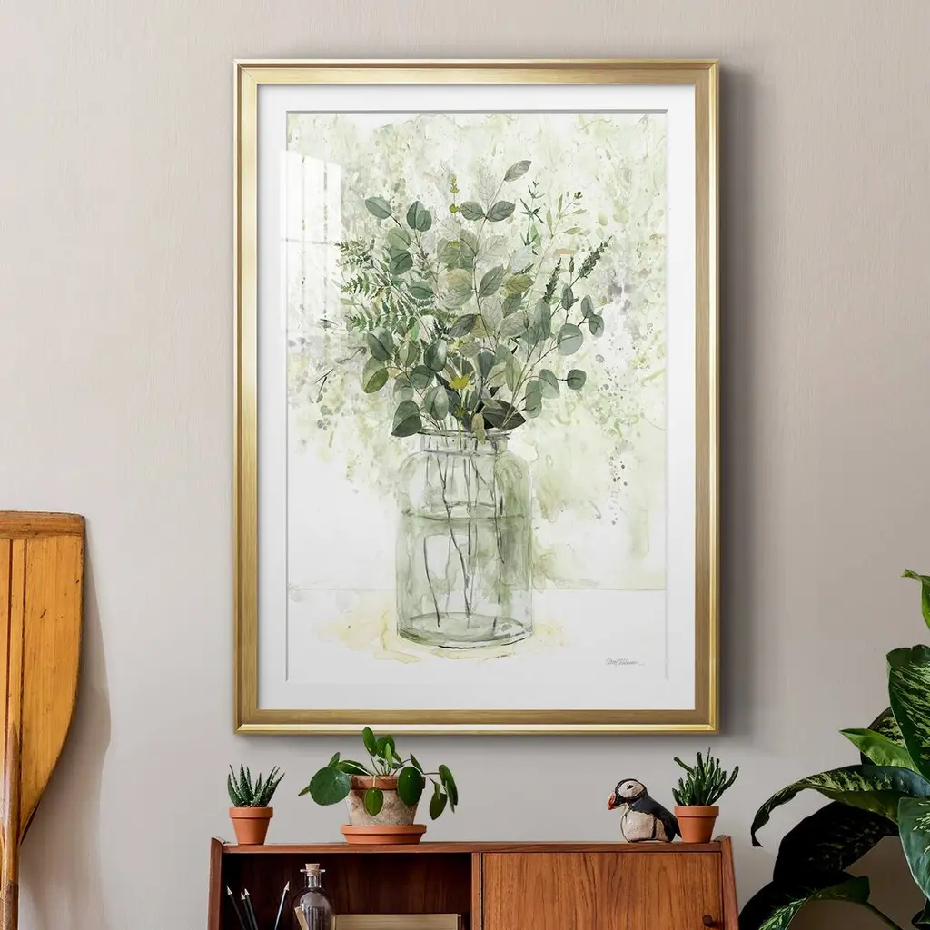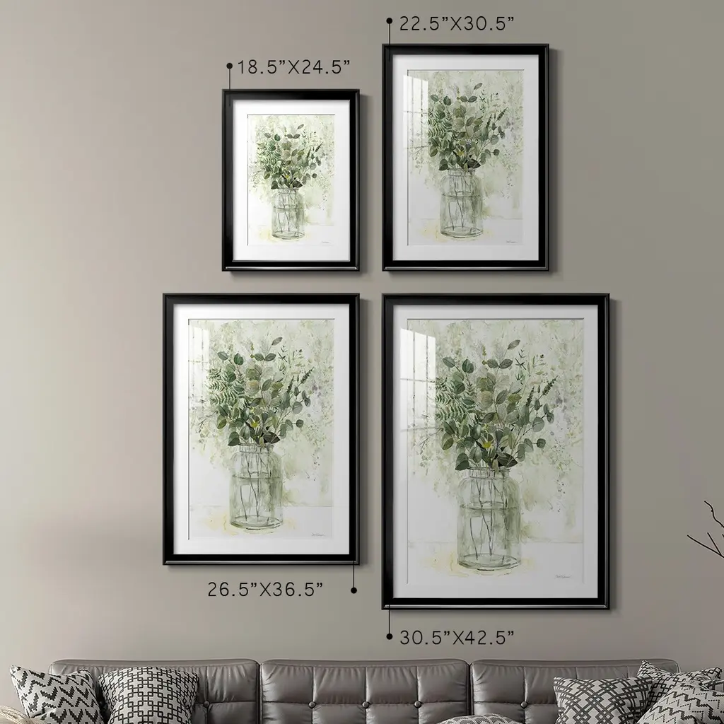 Delicate Greenery II Premium Framed Print - Ready to Hang A Premium Framed Print created to last. Framed in distressed wood and available in an array of sizes and colors Featuring a beveled a solid wood stretcher bar, each piece comes ready to hand 4 SIZES AVAILABLE 30.5''X42.5'' - Overall Size 26.5'X36.5'' - Overall Size 22.5''x30.5'' - Overall Size 18.5''x24.5'' - Overall Size Each piece is made to order. Each piece comes with hanging hardware. Made in the USA Ready to Hang Giclee Paper Print Acrylic Glass Beveled Matt Board