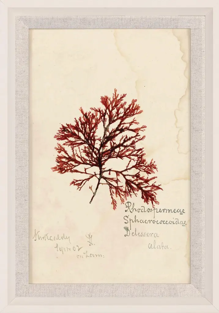 A stylish collection of 9 vintage prints showing beautiful hand illustrated artworks of marine algae and sea shells. Printed on Litho paper, each artwork comes framed with a light grey vintage frame. Framed Art is our luxury range for wall decorations. Fine art prints made on premium quality papers are enhanced with mountboards and high quality wood mouldings.