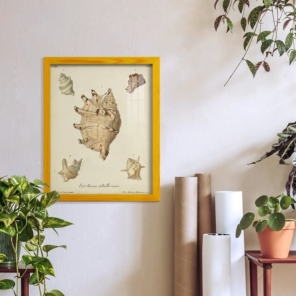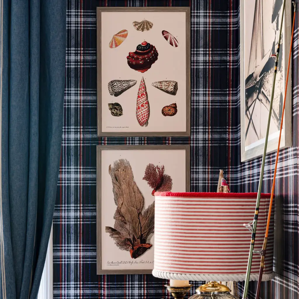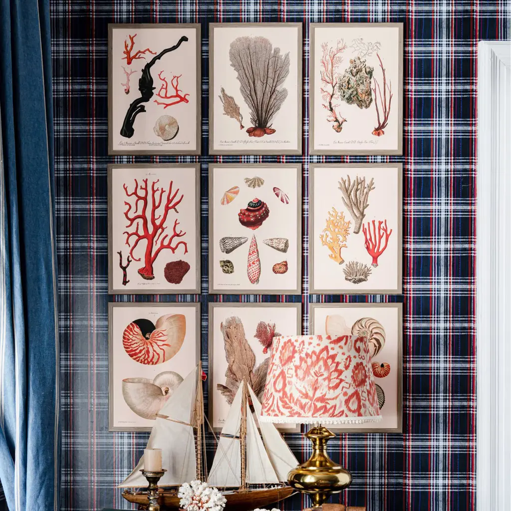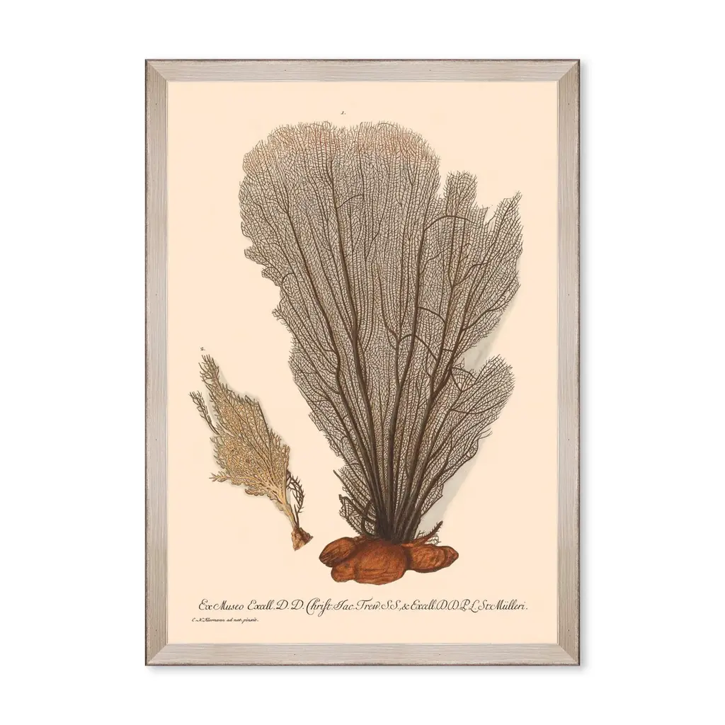 A stylish collection of 9 vintage prints showing beautiful hand illustrated artworks of marine algae and sea shells. Printed on Litho paper, each artwork comes framed with a light grey vintage frame. To be sold individually or as a set.Framed Art is our luxury range for wall decorations. Fine art prints made on premium quality papers are enhanced with mountboards and high quality wood mouldings. We use Italian and English premium mouldings so we can offer a high end range of artworks.