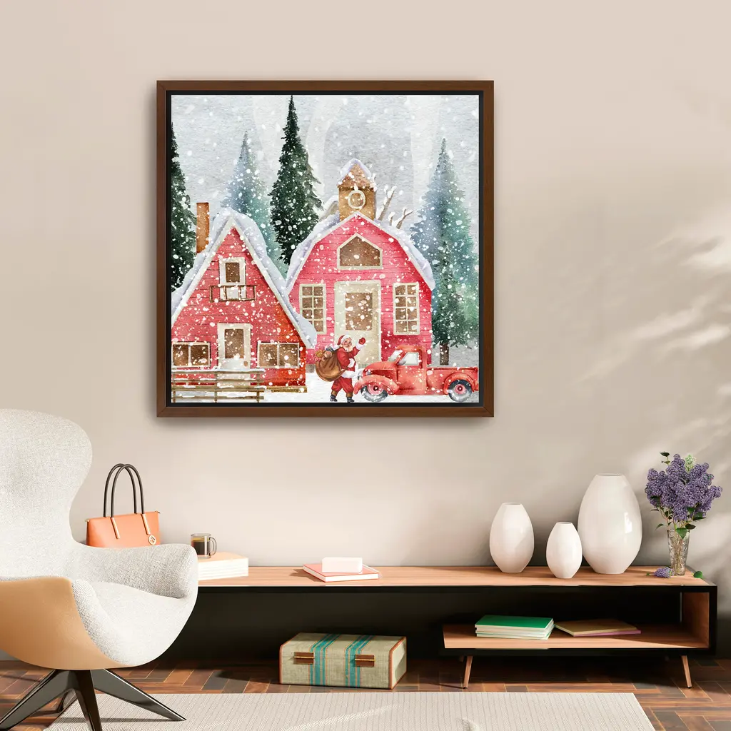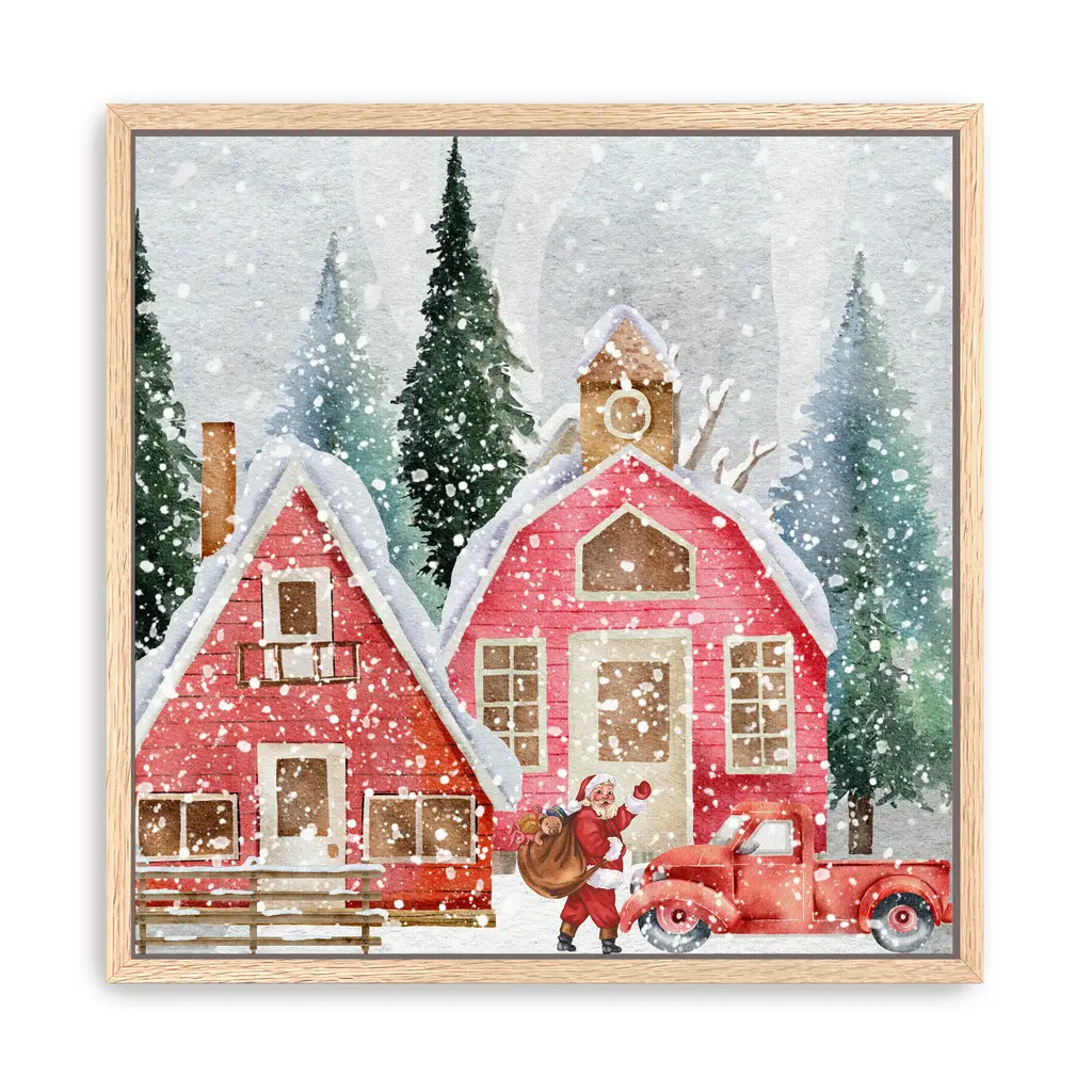 Delivery From Santa Canvas Giclee - Framed / Black / 40x40
