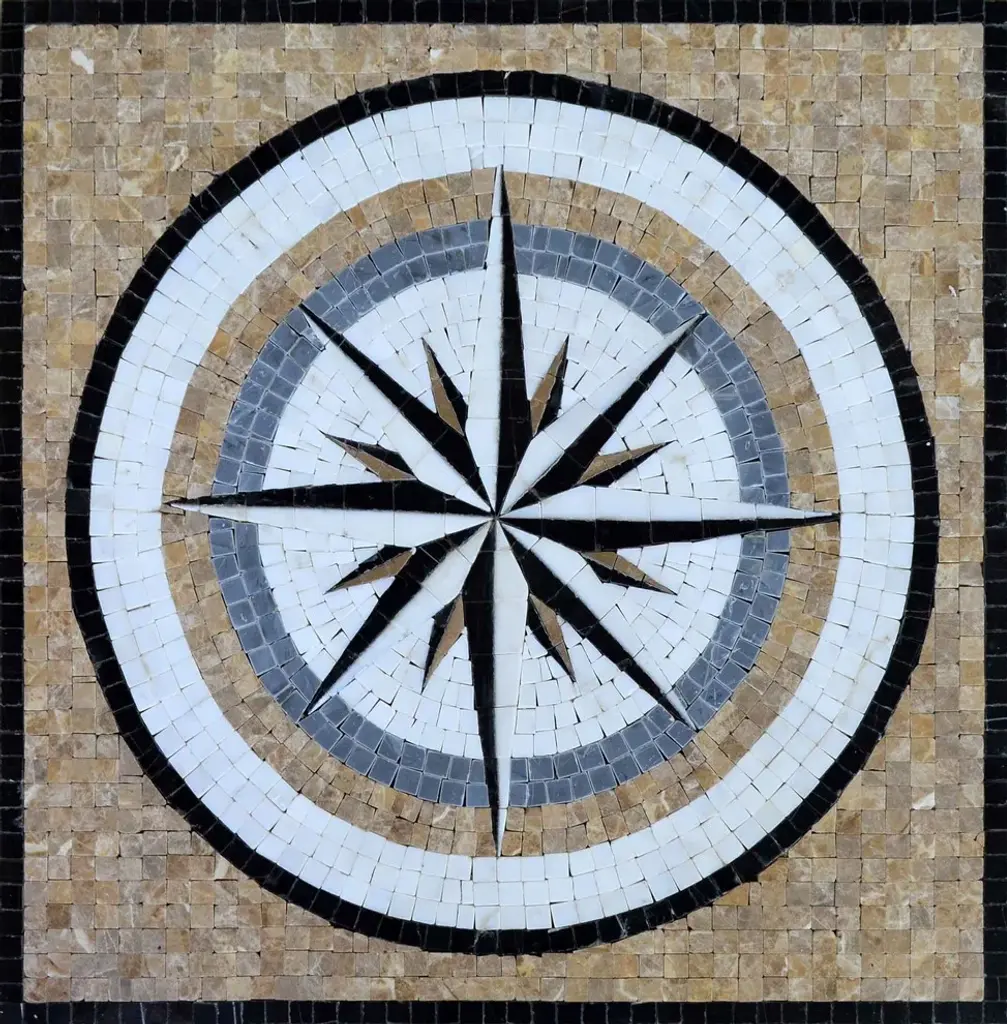 Delphine - Compass Stone Mosaic Art - 40cm X 40cm (16" X 16") / Without Frame