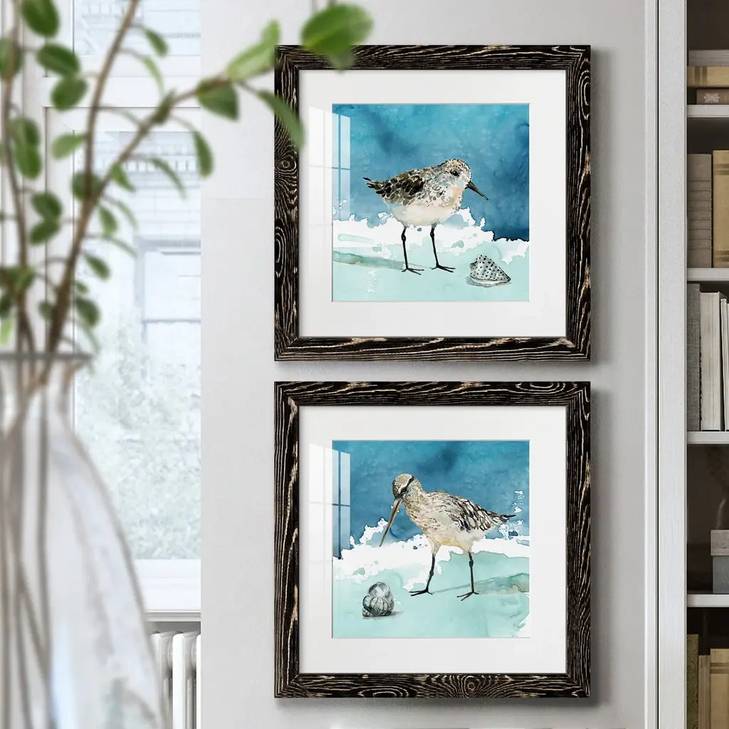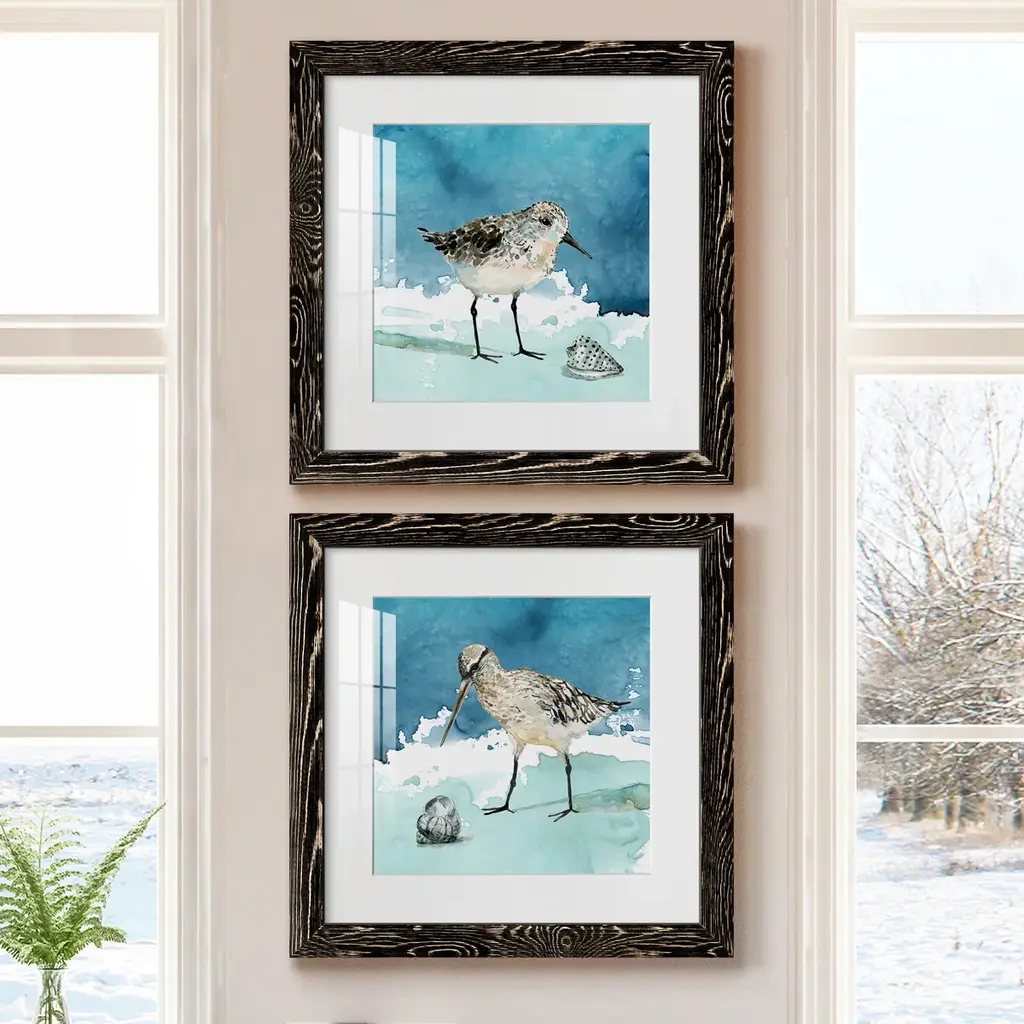 Delray Sandpiper I-Premium Framed Print - Ready to Hang Framed in distressed wood and available in an array of sizes and colors Each piece is joined and assembled by hand and comes ready to hang 2 INCH BEVELED MATTE BOARD PLEXIGLASS COVERING READY TO HANG MADE IN THE USA SOLID WOOD FRAME MADE IN USA FADE RESISTANT GICLEE PRINTING on Canvas or Paper