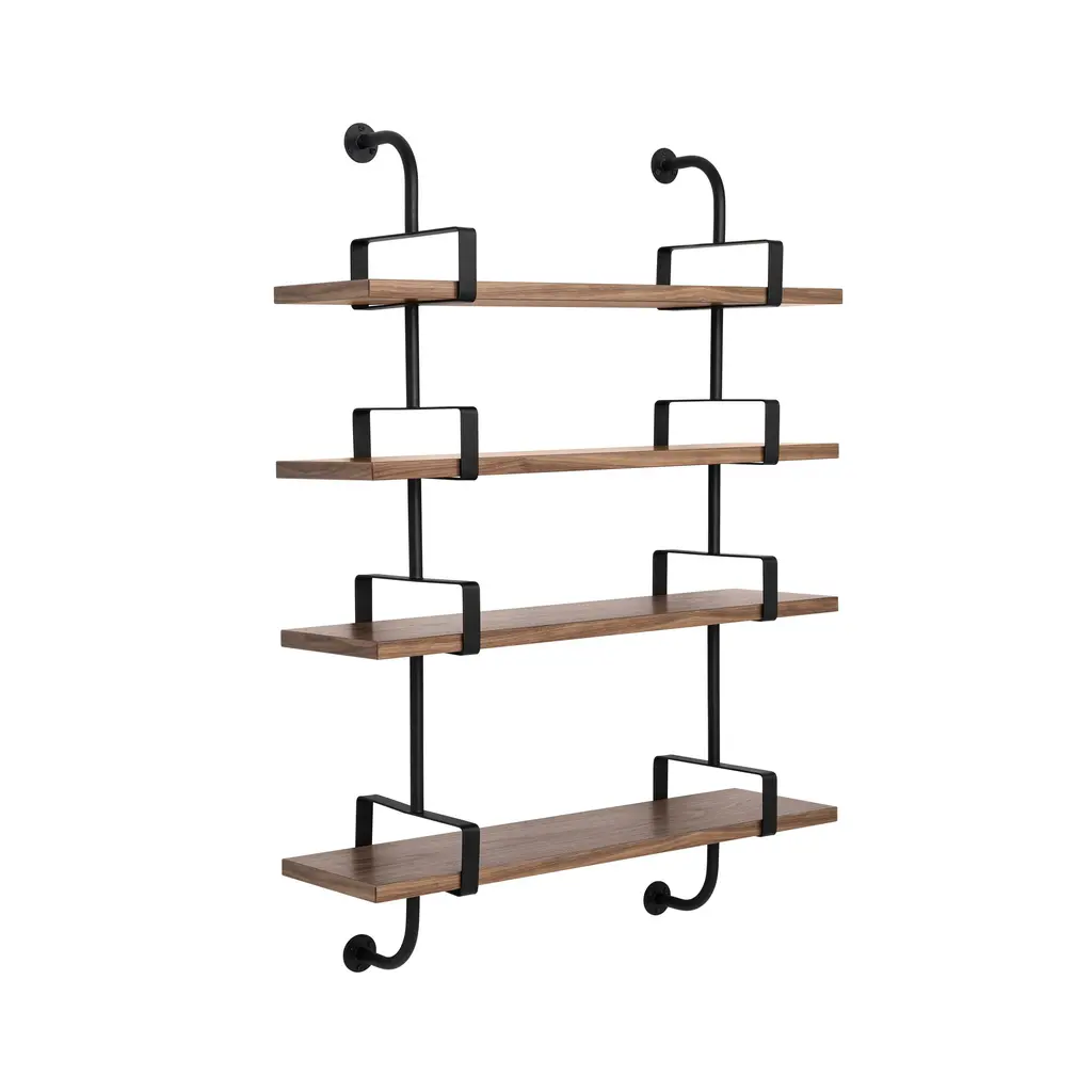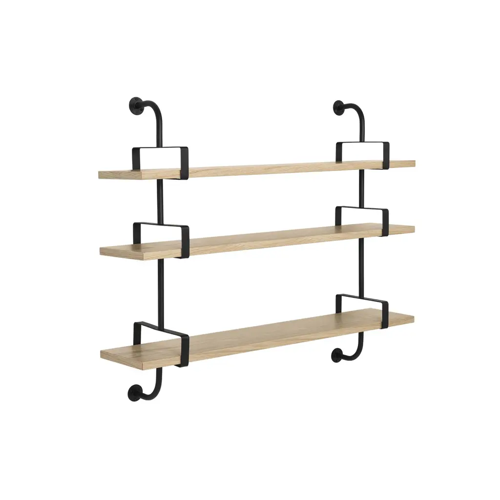 Mathieu Matégot's dual-shelf "Biblio-Démon" as it is listed on his original 1954 sketches was expressly intended for a home library and study. The French designer sought to meet the demands of modern life with the then-novel idea of a modular shelving system which could be combined in multiples as needed. Timeless then and now, the veneered shelves come in natural oak, natural walnut or black-stained ash with distinctive the metal brackets lacquered in black.