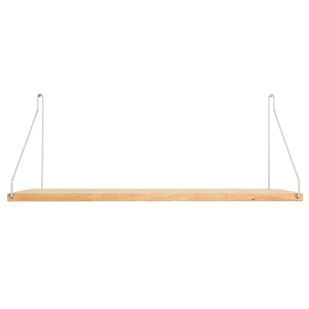 Mathieu Matégot's dual-shelf "Biblio-Démon" as it is listed on his original 1954 sketches was expressly intended for a home library and study. The French designer sought to meet the demands of modern life with the then-novel idea of a modular shelving system which could be combined in multiples as needed. Timeless then and now, the veneered shelves come in natural oak, natural walnut or black-stained ash with distinctive the metal brackets lacquered in black.