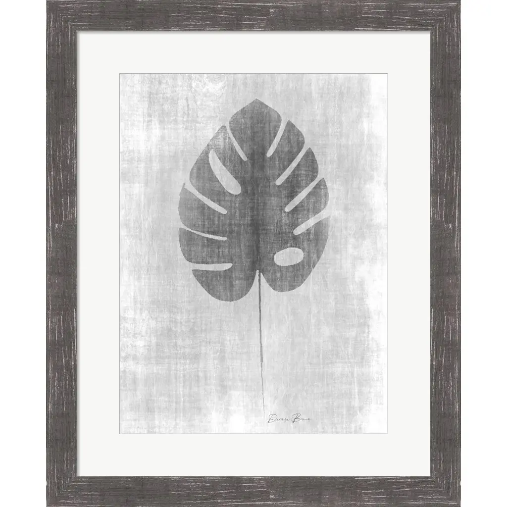 Tone on Tone Palm 4 by Denise Brown is a high quality piece of framed artwork. The finished size of this piece is 13.5" X 16.5". It has a Rustic Grey Distressed frame, is single matted and finished with high quality Acrylic Plexiglass. 100% Satisfaction Guaranteed.