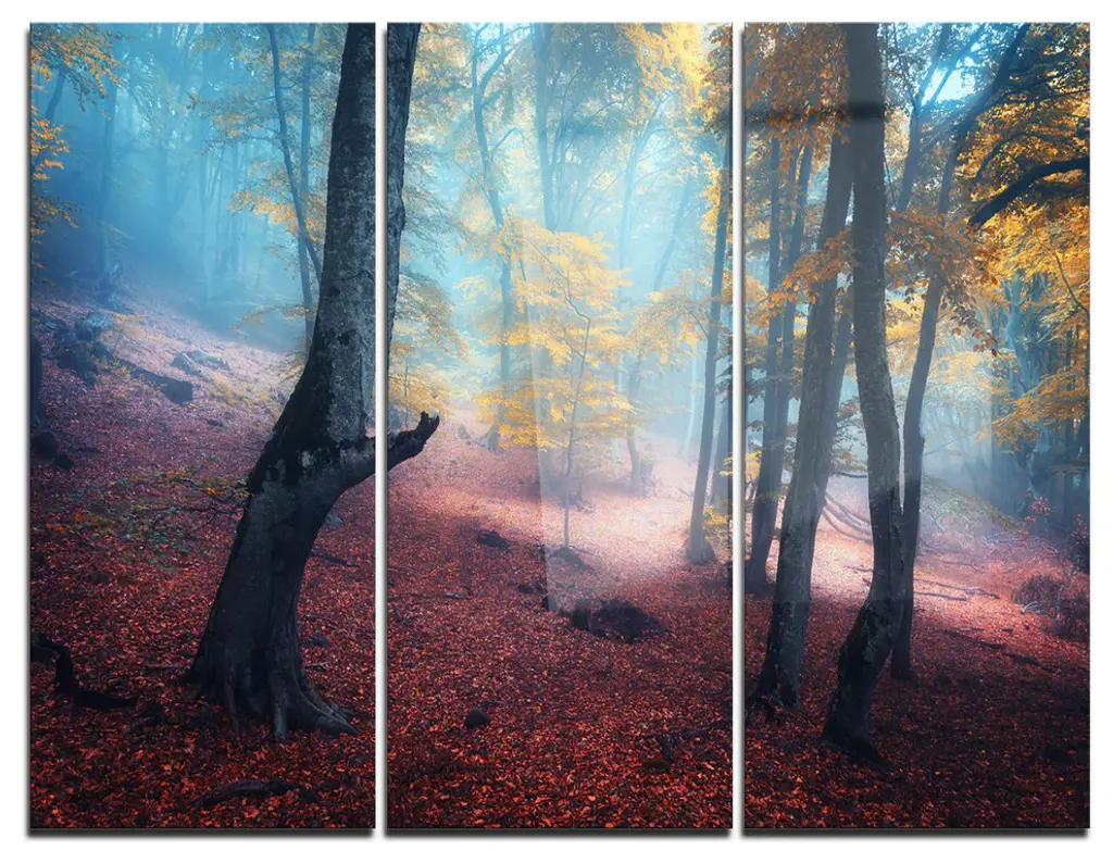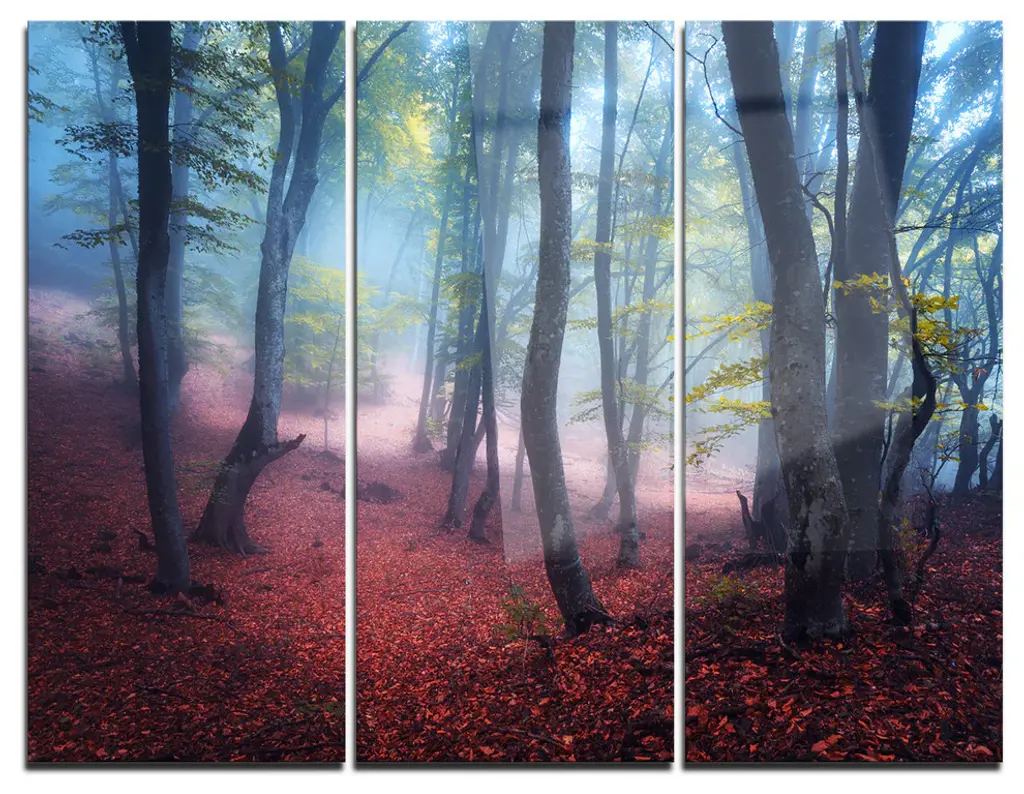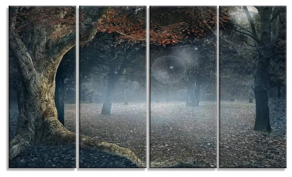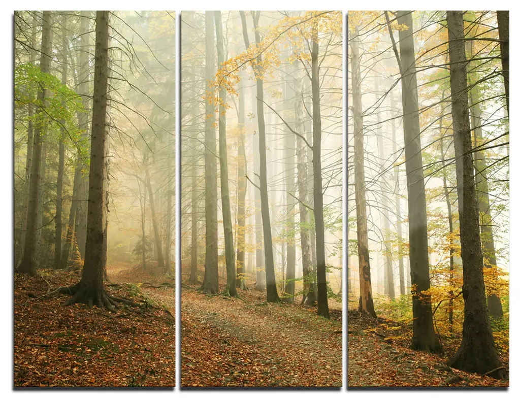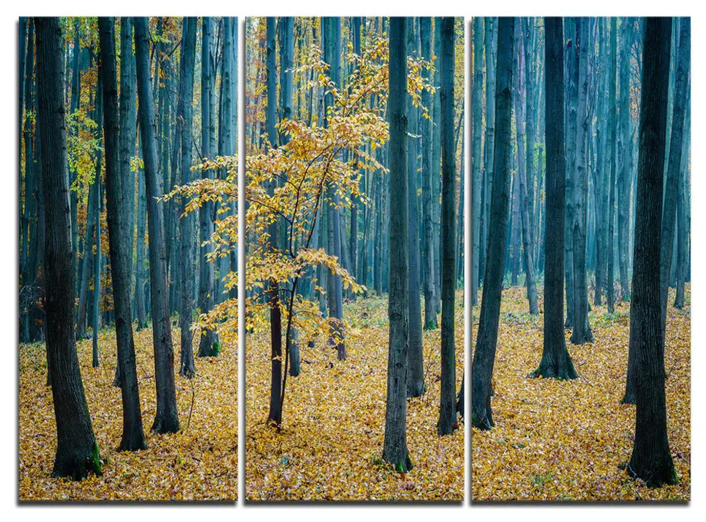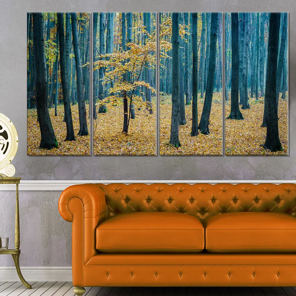 "Dense Autumn Beach Forest" Oversized Forest Canvas Artwork, 4 Panels, 48"x28"