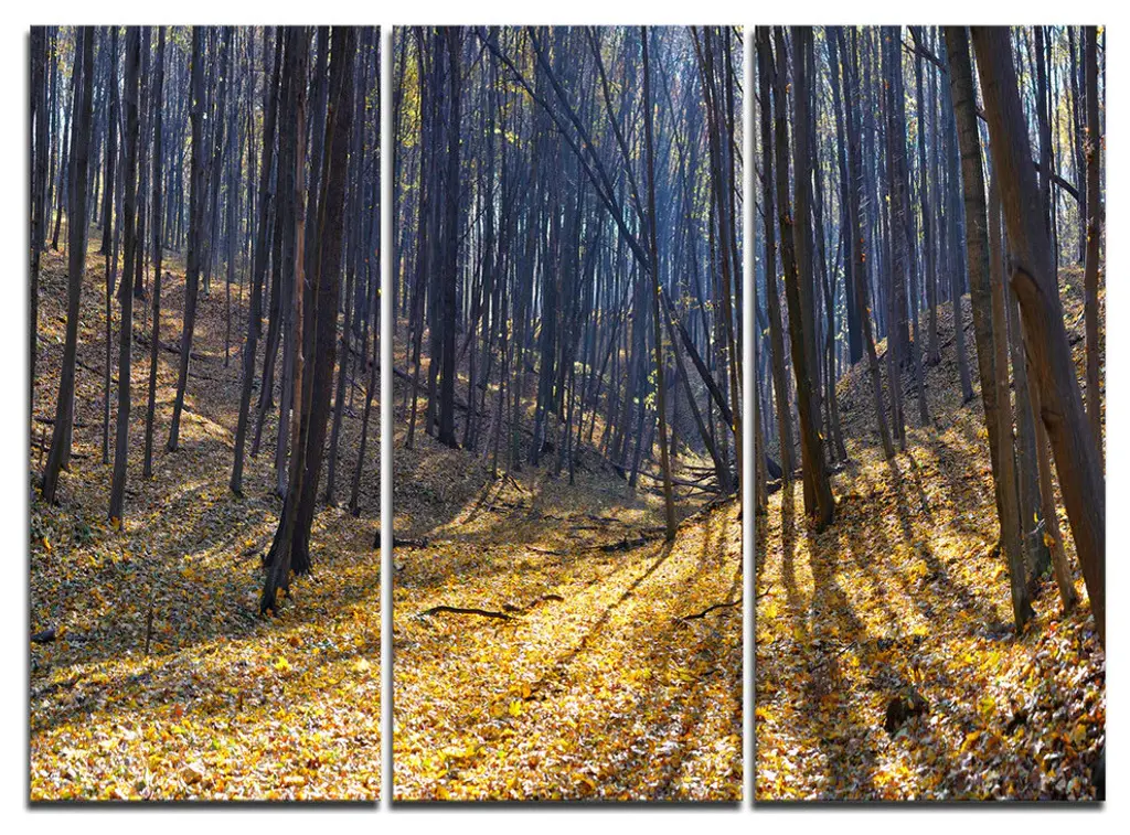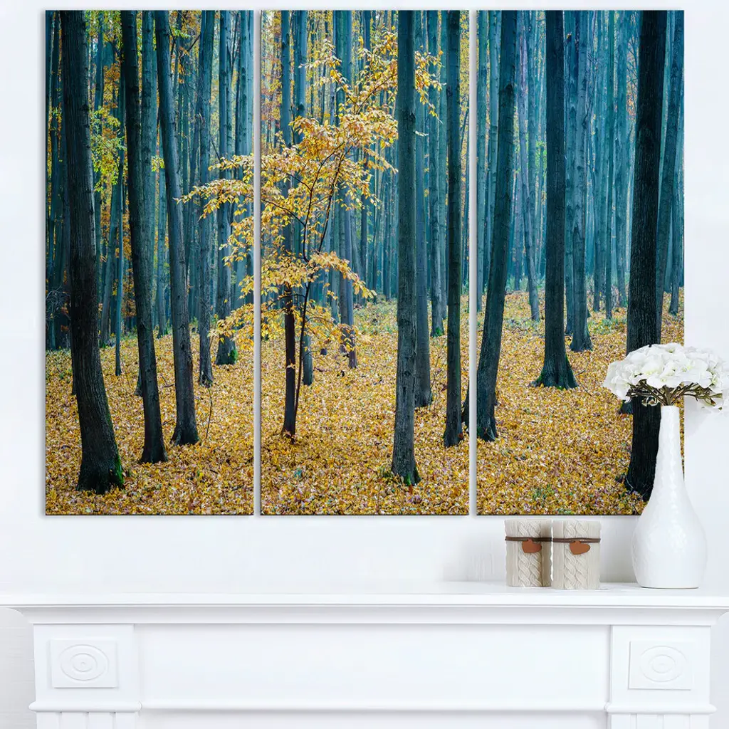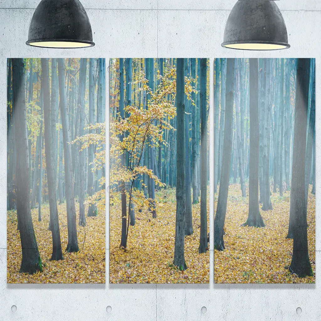 "Dense Autumn Beach Forest" Oversized Forest Metal Wall Art, 3 Panels, 36"x28"