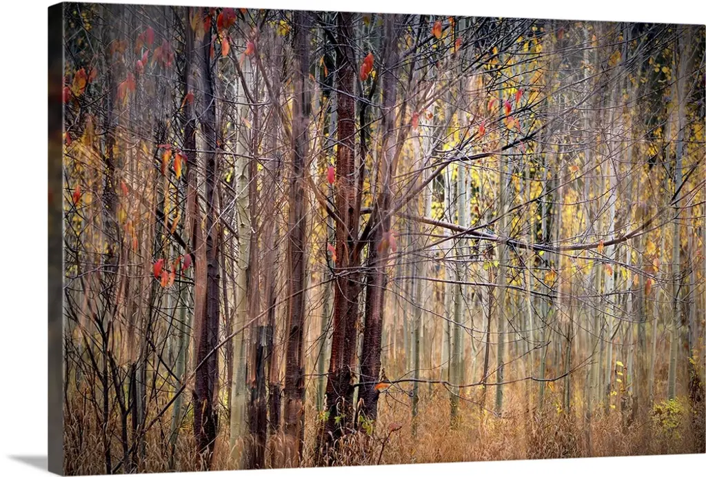 Dense Fall Forest Panorama, Forest Canvas Art Print, 60"x28"