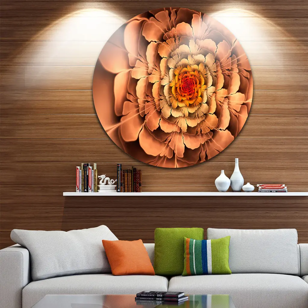 Dense Fractal Brown Petals, Floral Abstract Round Metal Wall Art, 23"