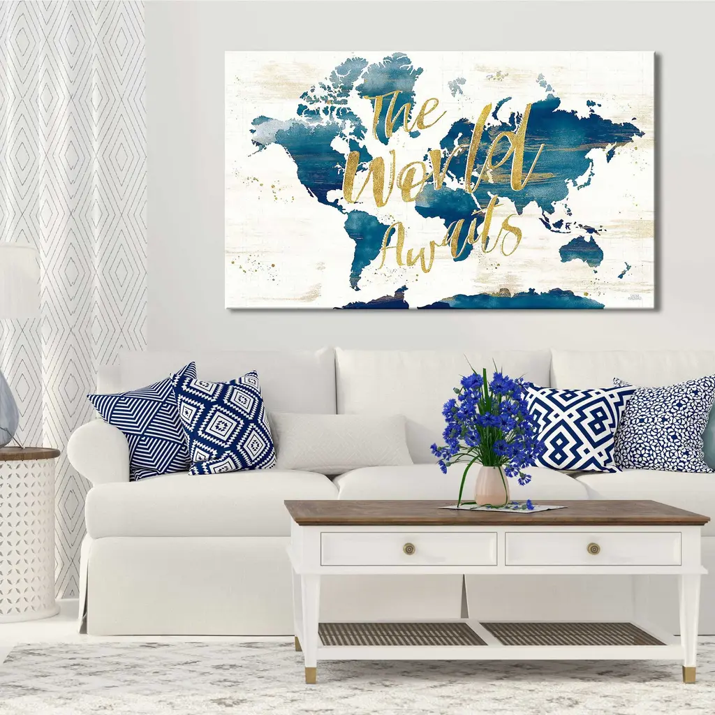 "Desert Blooms Abstact Map The World" By Print On Canvas - 28 X 48