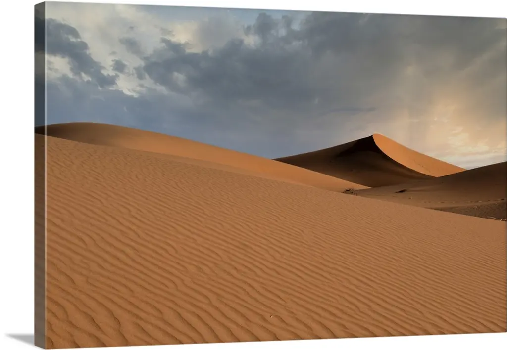 Desert Dunes Under Cloudy Sky, Modern Landscape Round Wall Art, 36"