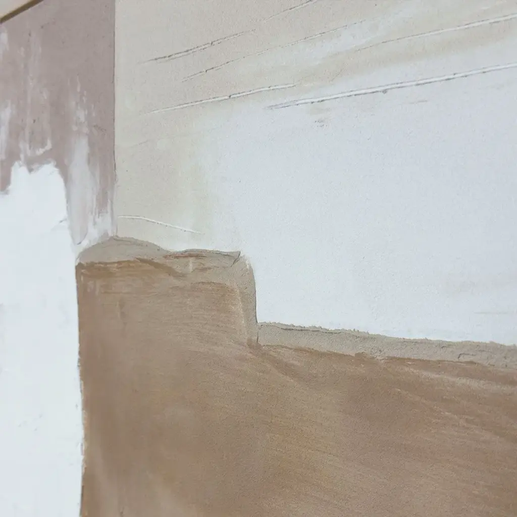 Desert Echo is a large-scale abstract painting hand-painted on canvas. Blocks of color in natural tones are arranged and overlapped in a composition of delicate color contrasts. With a wooden inner frame and wooden frame, the painting is ready to hang.The AGAVE Quadri collection represents the excellence of contemporary art applied to the world of interior design. Each piece, hand-painted with artisanal techniques by the finest artists in collaboration with the Italian company AGAVE, combines abstract, natural, and figurative elements to create unique and refined works. These paintings transform spaces into environments of great elegance and character, perfect for interior design projects that require a distinctive and artistic touch.