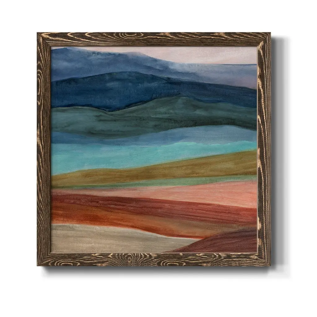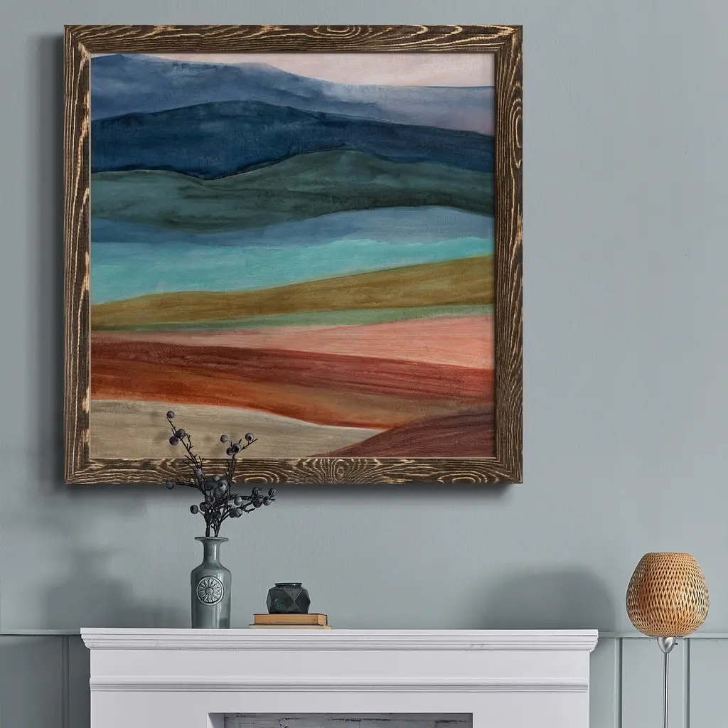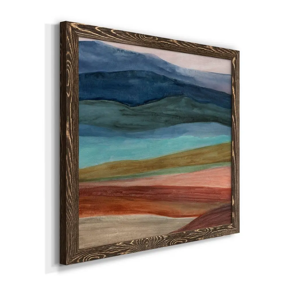 Desert Layers-Premium Framed Canvas - Ready to Hang Framed in distressed wood and available in an array of sizes and colors Each piece is joined and assembled by hand and comes ready to hang 2 INCH BEVELED MATTE BOARD PLEXIGLASS COVERING READY TO HANG MADE IN THE USA SOLID WOOD FRAME MADE IN USA FADE RESISTANT GICLEE PRINTING on Canvas or Paper