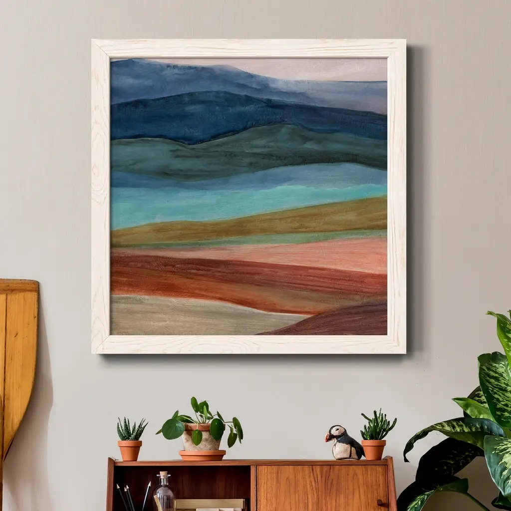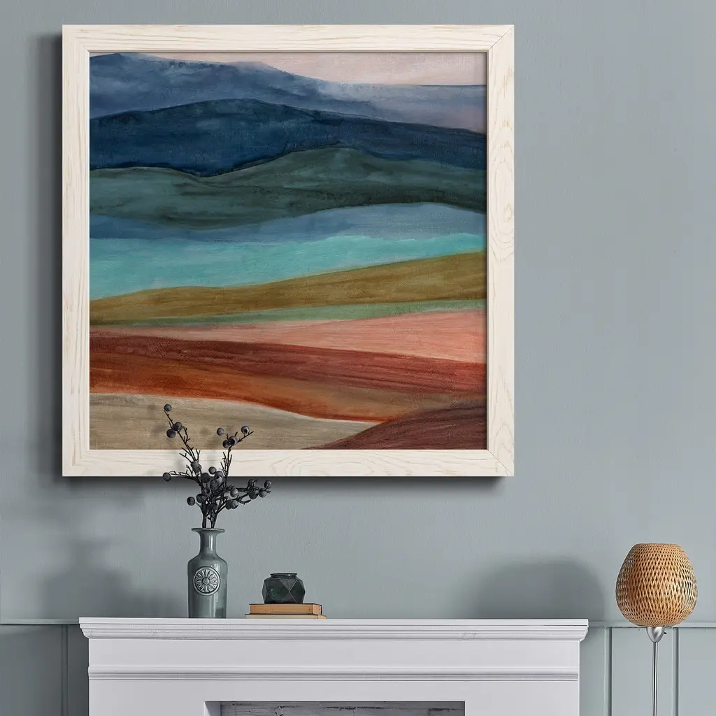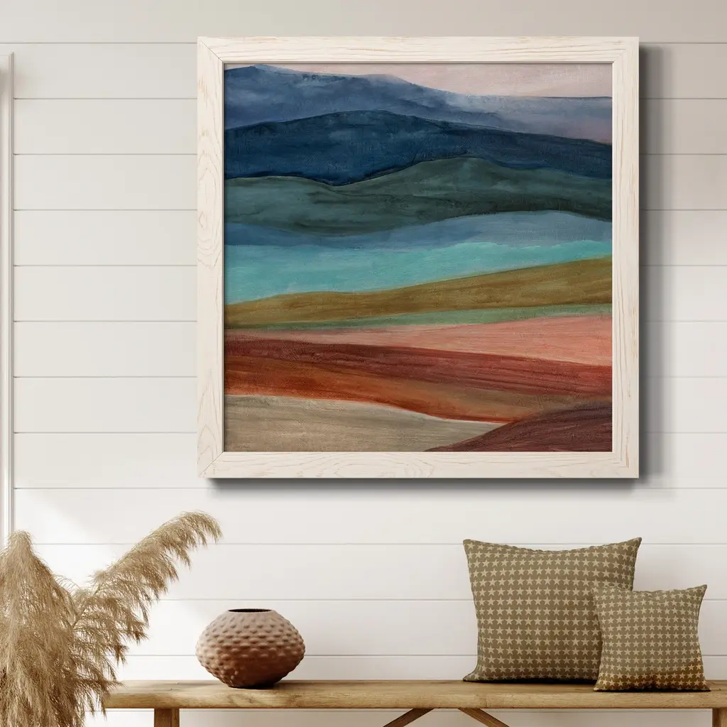 Desert Layers-Premium Framed Canvas - Ready to Hang Framed in distressed wood and available in an array of sizes and colors Each piece is joined and assembled by hand and comes ready to hang 2 INCH BEVELED MATTE BOARD PLEXIGLASS COVERING READY TO HANG MADE IN THE USA SOLID WOOD FRAME MADE IN USA FADE RESISTANT GICLEE PRINTING on Canvas or Paper