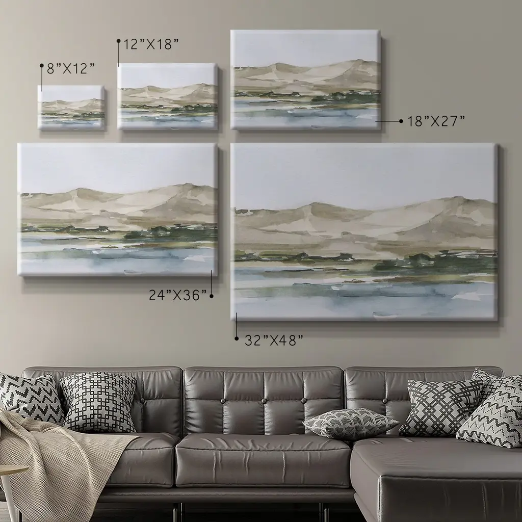 Desert Mountains II Premium Gallery Wrapped Canvas - Ready to Hang A premium hand stretched gallery wrapped canvas print created to last. Featuring a beveled a solid wood stretcher bar, each piece comes ready to hand 6 SIZES AVAILABLE 8''X12'' - Overall Size 12''X18'' - Overall Size 18''X27'' - Overall Size 24''x36'' - Overall Size 32''x48'' - Overall Size 40''x60'' - Overall Size Each piece is made to order. Built to Last Each piece comes ready to hang Solid wood stretcher Fade and Water resistant Made domestically