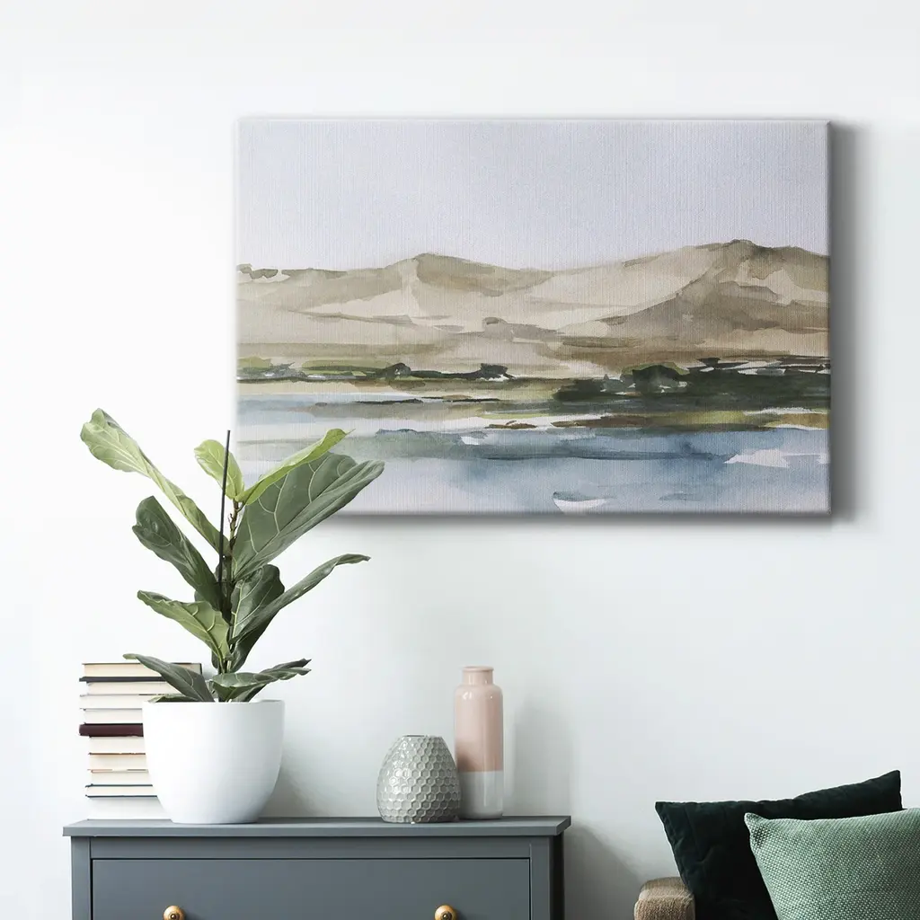 Desert Mountains II Premium Gallery Wrapped Canvas - Ready to Hang A premium hand stretched gallery wrapped canvas print created to last. Featuring a beveled a solid wood stretcher bar, each piece comes ready to hand 6 SIZES AVAILABLE 8''X12'' - Overall Size 12''X18'' - Overall Size 18''X27'' - Overall Size 24''x36'' - Overall Size 32''x48'' - Overall Size 40''x60'' - Overall Size Each piece is made to order. Built to Last Each piece comes ready to hang Solid wood stretcher Fade and Water resistant Made domestically