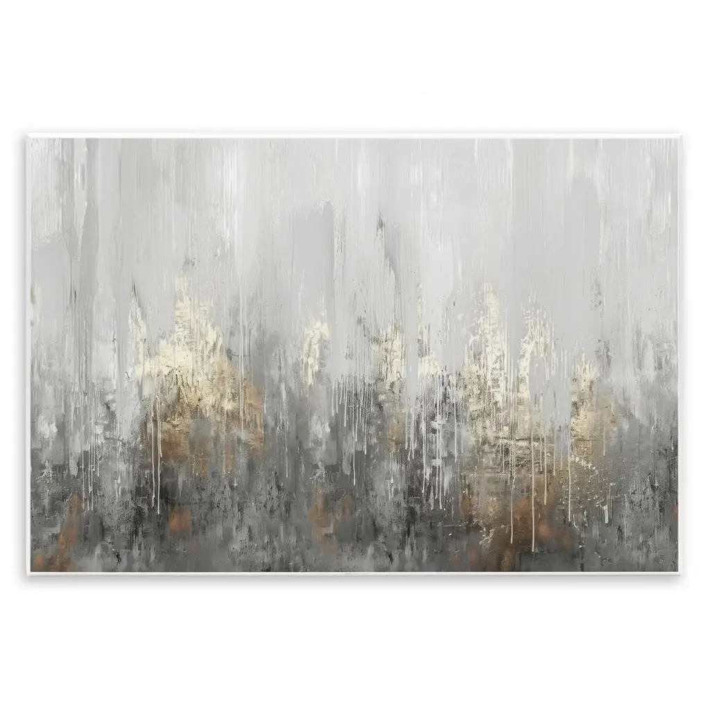 The Desert Rain Hand Painted Abstract Wall Art from Uttermost evokes gentle precipitation on parched landscapes through layered techniques. Vertical brushstrokes mimic natural rainfall, while horizontal elements suggest the earth absorbing moisture. Metallic accents appear like the sun breaking through storm clouds, creating natural focal points throughout the composition. The artist employs varied application pressures to build surfaces with tactile dimensions that reward close inspection. Neutral tones allow this piece to integrate with existing décor while still maintaining its artistic integrity. The antique silver frame provides definition without competing with the painting's subtle narrative.