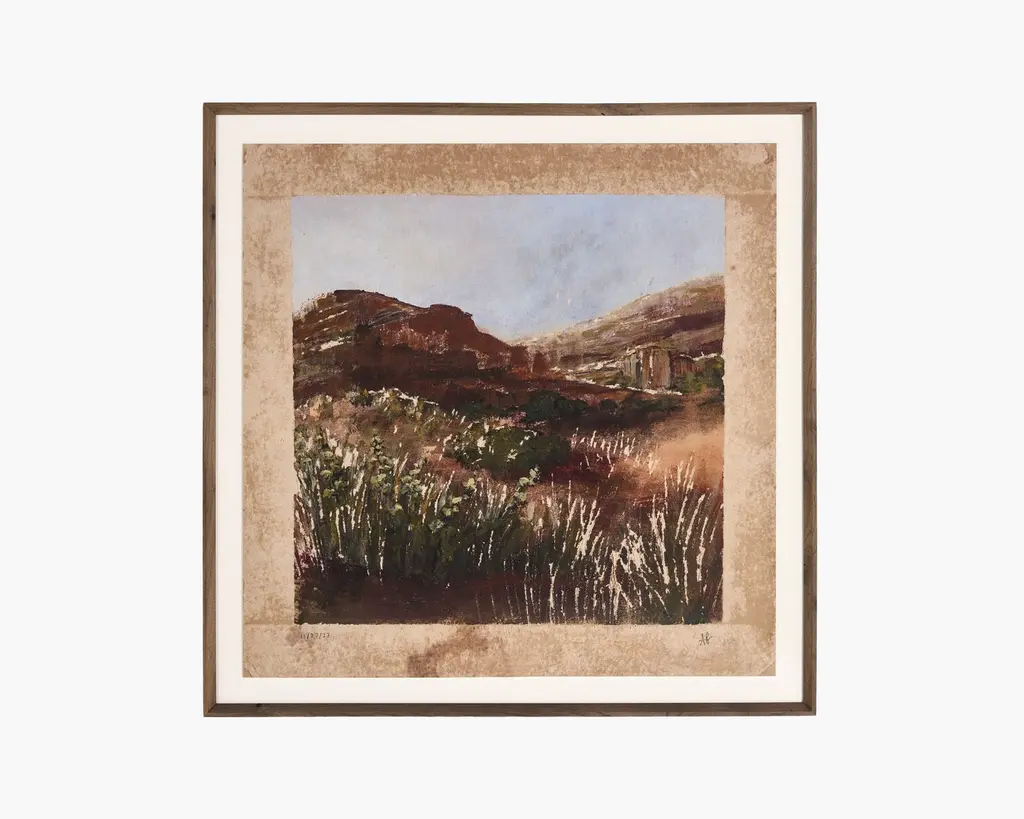 The Desert series by Aileen Fitzgerald offers earthy, impressionist-style landscapes rich with texture and depth. The earthy palette includes hues of ochre, sienna, and moss, bringing a grounding tone to your wall decor. This giclee print captures every nuance of the original artwork.
