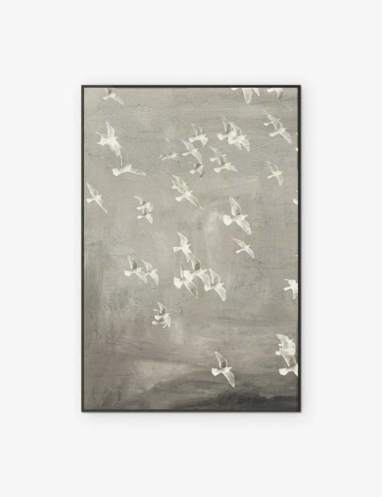 Abstract Birds 1 by Design Fabrikken is a high quality piece of framed artwork. The finished size of this piece is 13" X 19". It has a Distressed Grey Knotty Wood frame and is finished with high quality Acrylic Plexiglass. 100% Satisfaction Guaranteed.