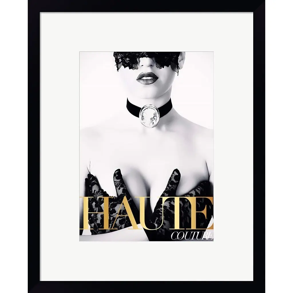 Couture 4 by Design Fabrikken is a high quality piece of framed artwork. The finished size of this piece is 14.75" X 18". It has a Petite Black with Flat Front frame, is single matted and finished with high quality Acrylic Plexiglass. 100% Satisfaction Guaranteed.