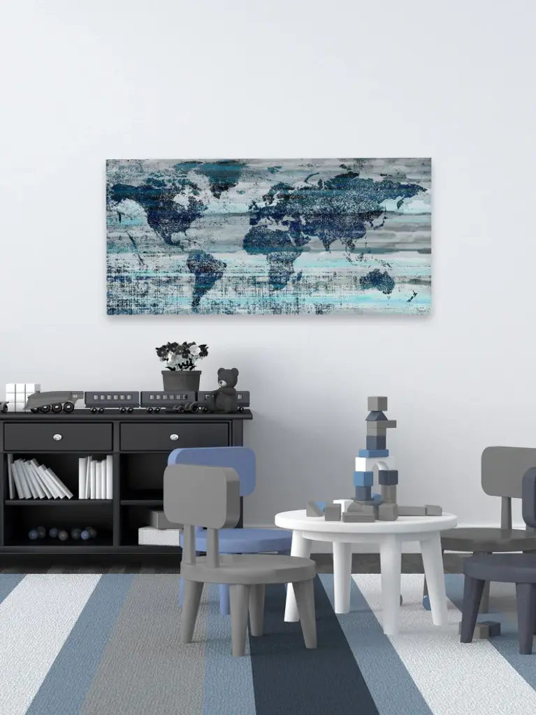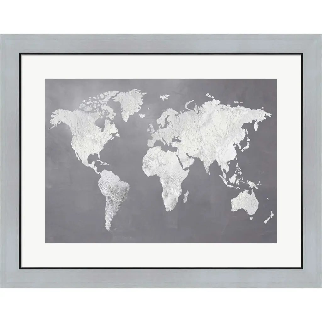 Silver World by Design Fabrikken is a high quality piece of framed artwork. The finished size of this piece is 30.5" X 24.25". It has a Solid Chrome Wire Brushed Silver with Black Edges frame, is single matted and finished with high quality Acrylic Plexiglass. 100% Satisfaction Guaranteed.