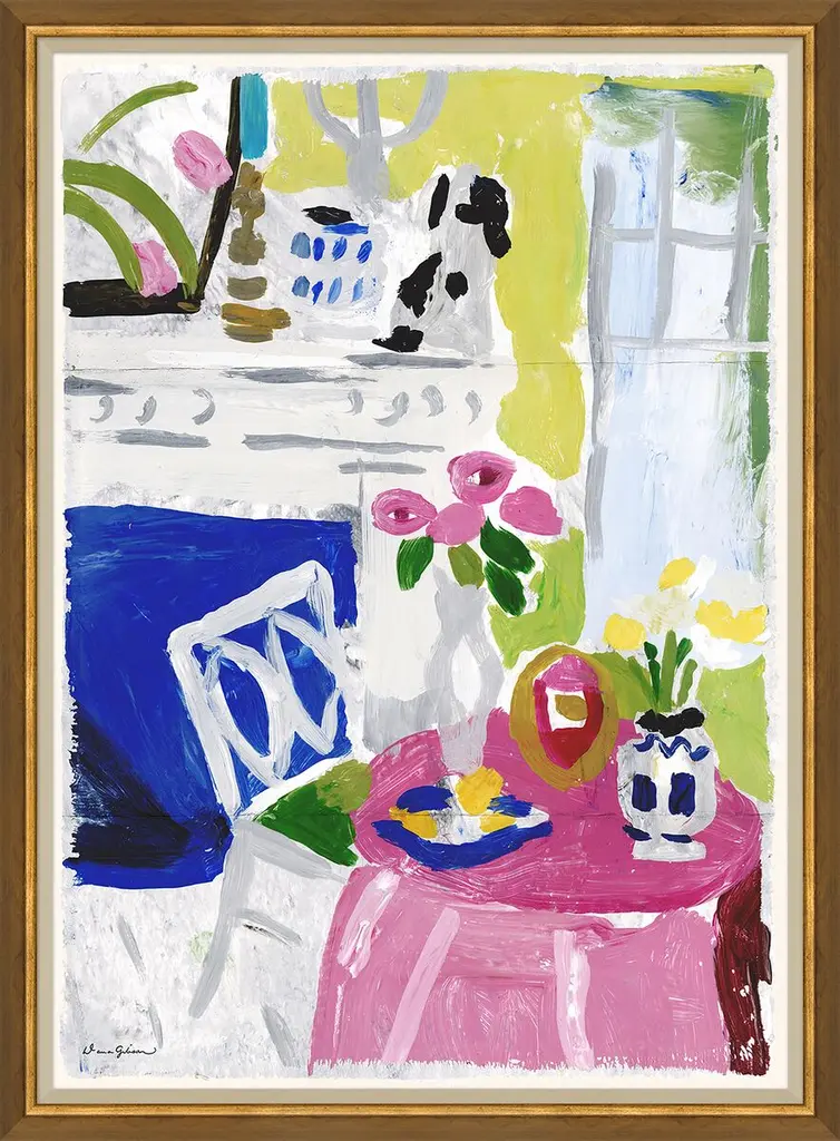 Fine art giclee print of my original painting of an interior. All giclée prints are digitally recreated from scanned original hand paintings by Shann Spishak. Professionally printed on white, museum quality matte paper. The image size is 16x20 and there will be a two inch white border around the image for framing purposes. The total size of the giclee paper is 20x24 inches. Choose your own personal style of framing. Drop shipped to you in a sturdy tube, directly from my professional printer. Purchase with confidence. All image and reproduction rights © Shann Spishak. Shann's work has been collected world wide for over fifteen years. Her education includes studio art and interior design. Every day she's inspired to paint imaginary worlds where color and playfulness come together. Her paintings can be found in collections across the United States as well as abroad.